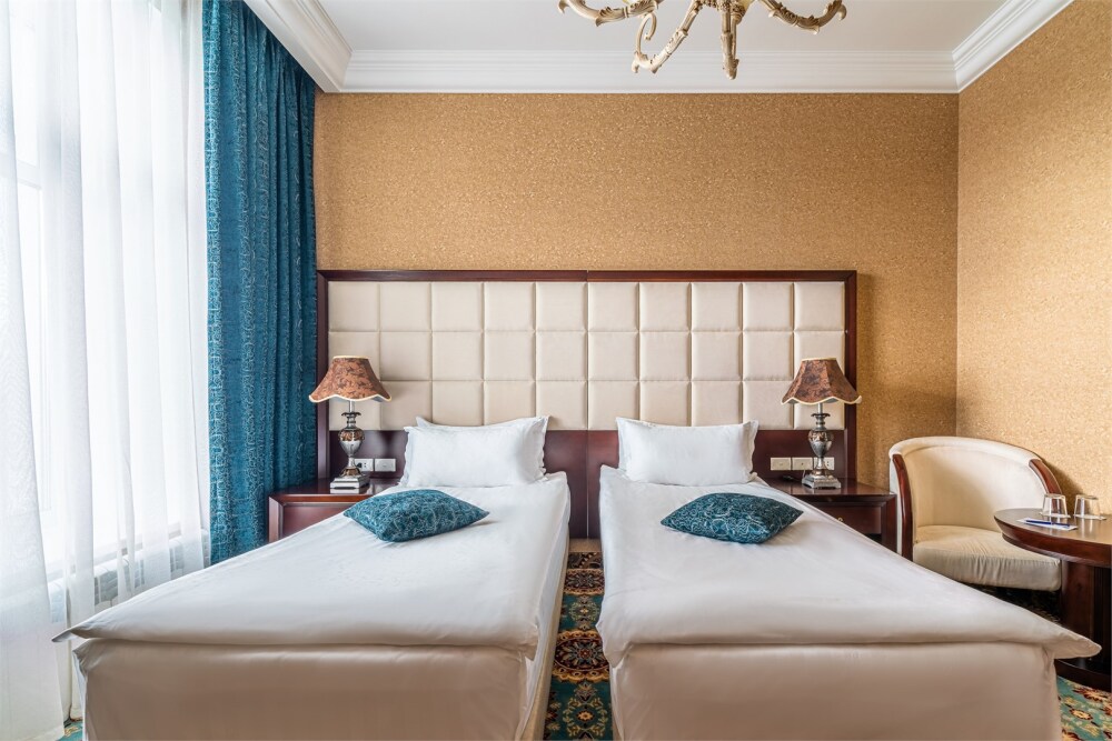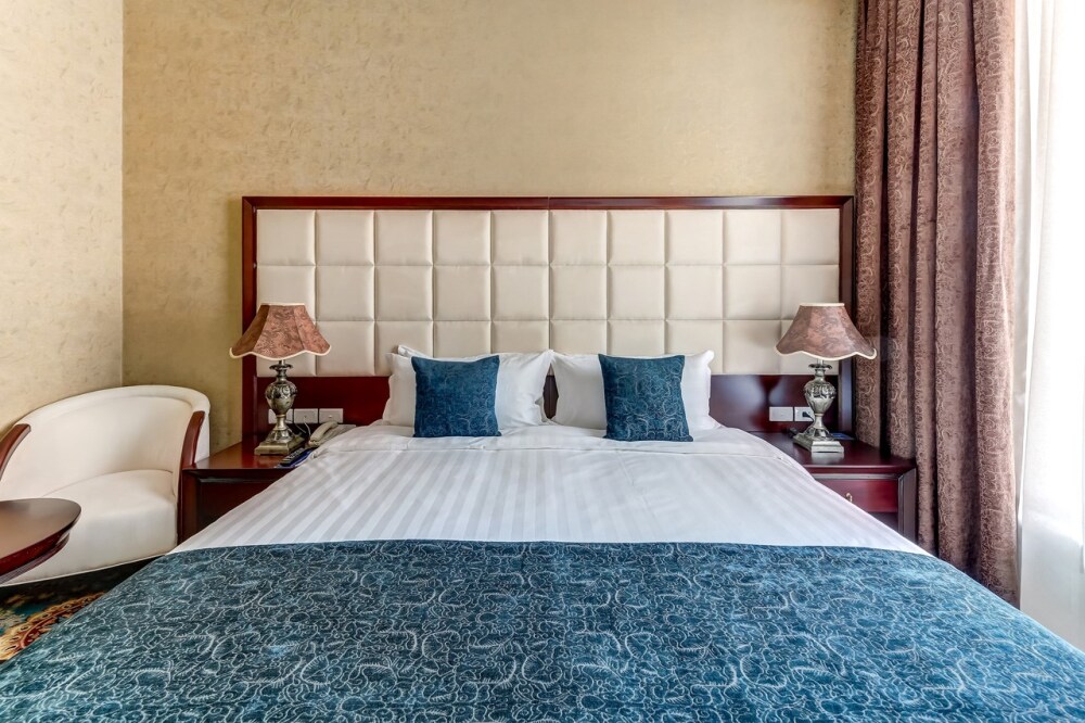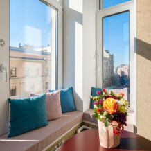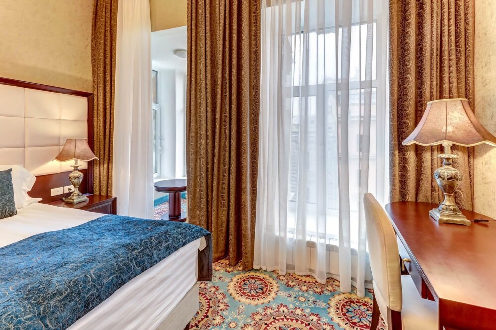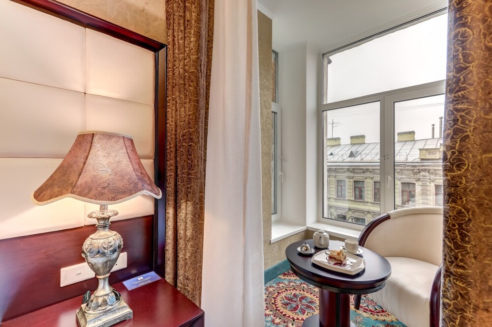Классические номера сочетают в оформлении светлые тона и оттенки индиго. Из окон открывается чудесный вид на Невский проспект или на уютный дворик. Тишина в номере обеспечивается современными стеклопакетами.