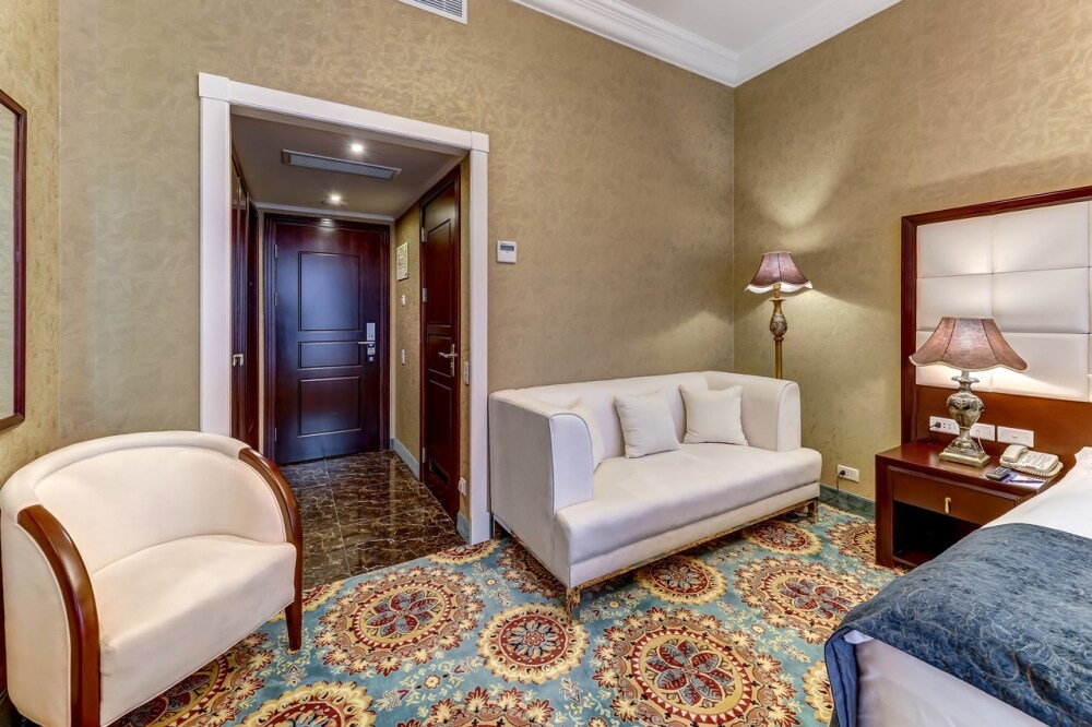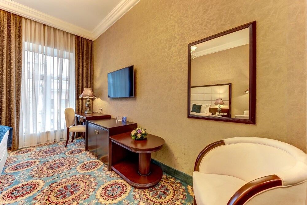 Интерьер этих просторных номеров выполнен в традиционном сочетании пастельных тонов и оттенков индиго. Площадь номера составляет 24 кв.м., что позволяет разместить дополнительную кровать для ребенка или взрослого человека. Гости отеля могут насладиться видом на исторический центр города и Невский проспект или же на тихий внутренний дворик.