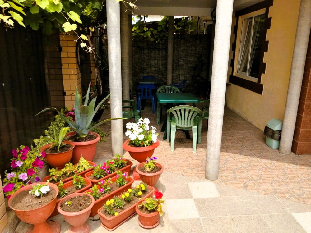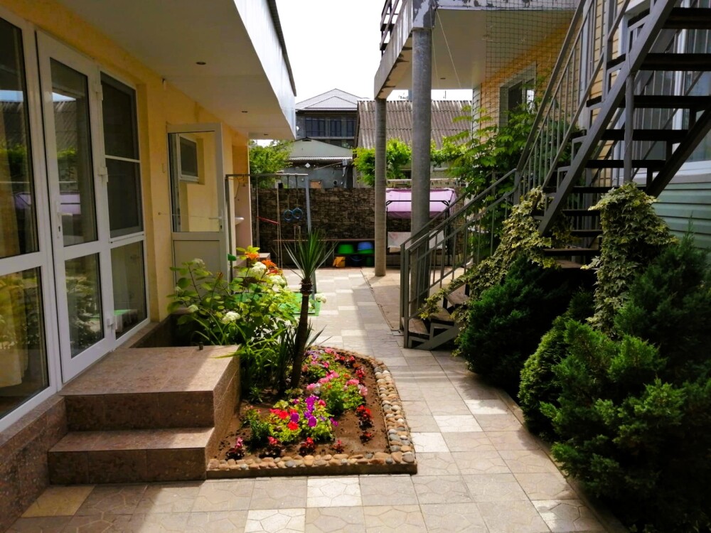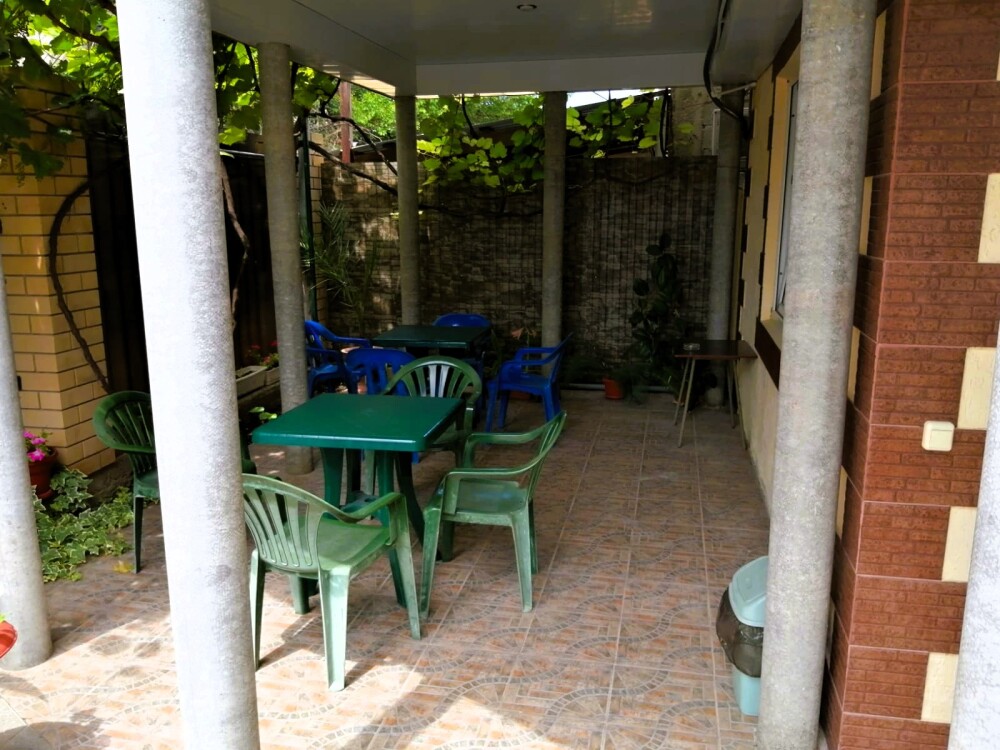 Двухэтажная гостиница на 10 номеров. Вас ждут 2-х, 3-х и 4-местные номера. Уютный, тихий двор с большой виноградной аркой, много клумб и цветов. На территории двора есть 3 беседки для отдыха и приёма пищи. Имеется мангальная зона. Для приготовления пищи имеется большая кухня где можно самостоятельно приготовить пищу. Вся посуда предоставляется.