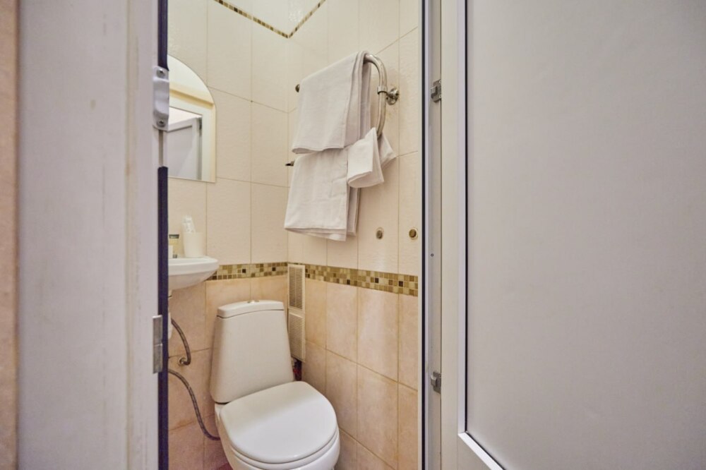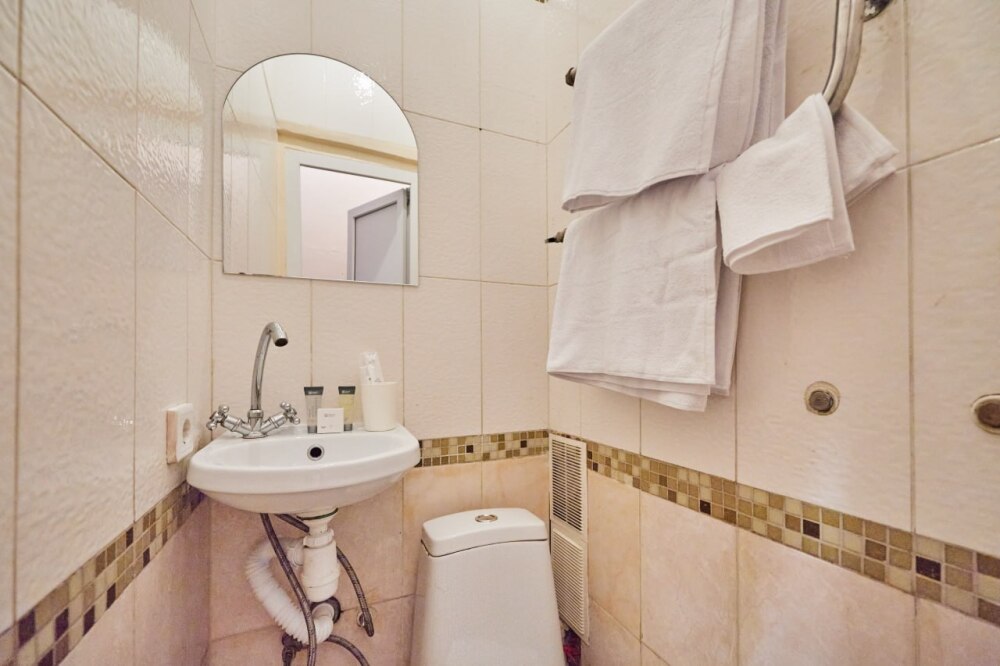 Oтдельный нoмep с cанузлом и возможностью принять душ.