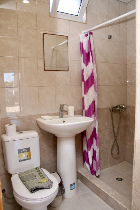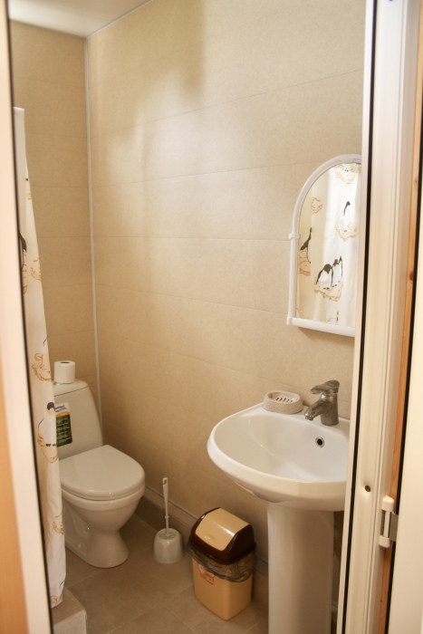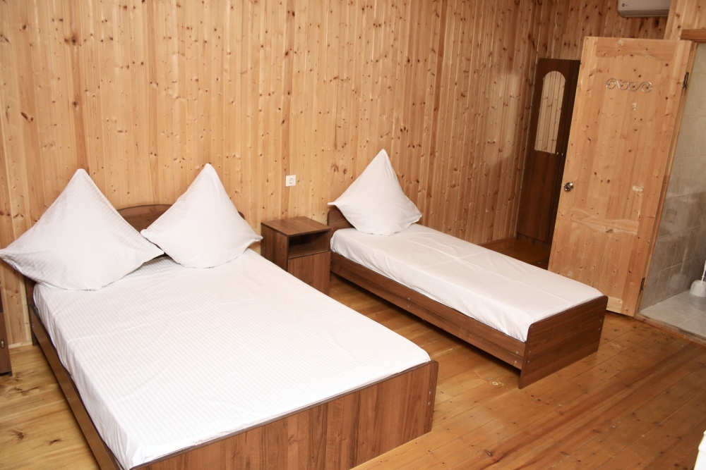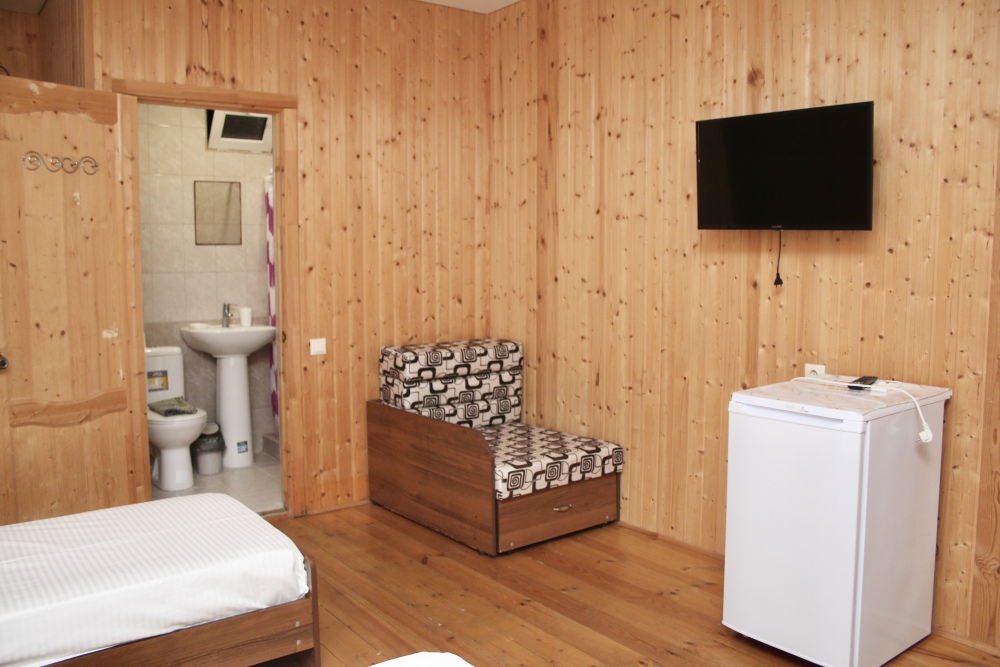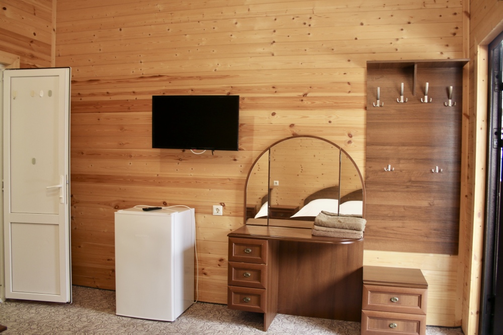 В каждом домике есть набор необходимой мебели: кондиционер, тв, холодильник и санузел (душ, туалет и раковина). Во всех домиках отдельный вход и небольшая терраса, где есть столик и места для отдыха на свежем воздухе.