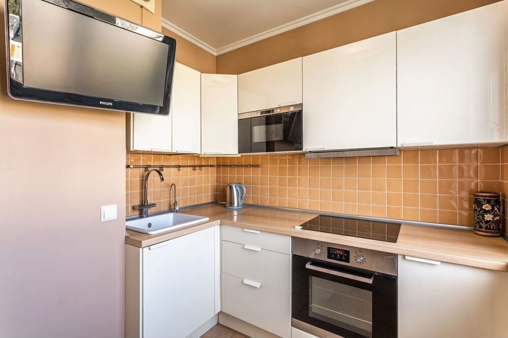 - оборудованная кухня: варочная панель, духовка, холодильник, микроволновая печь - все для удобства в приготовлении еды;