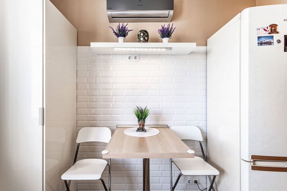 Квартира недавно отремонтирована в современном дизайне с акцентом на уют. Просторная планировка и множество окон делают пространство светлым и воздушным.