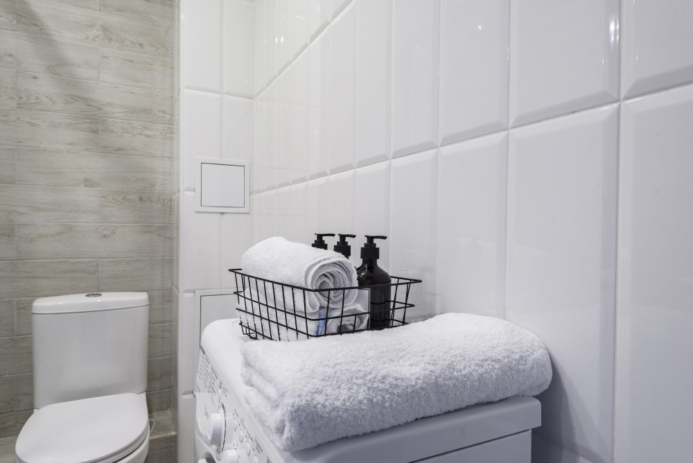 - Современные удобства: Wi-Fi, Smart TV, утюг, фен и стиральная машина.
