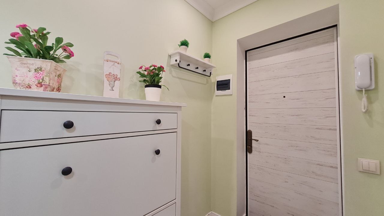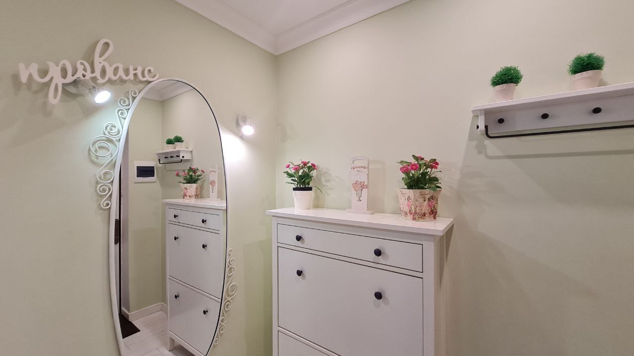 Дизайн квартиры выполнен в стиле Прованс, исключительно светлые тона, много света и воздуха.