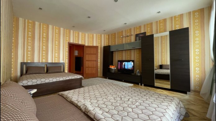 После длительных прогулок Вы можете отдохнуть на двухспальной кровати с ортопедическим матрасом, также в наличии большой плазменный телевизор. Для хранения вещей есть большой шкаф. Мы предоставляем постельное белье, полотенца, средства личной гигиены. В квартире беспроводной вай-фай.