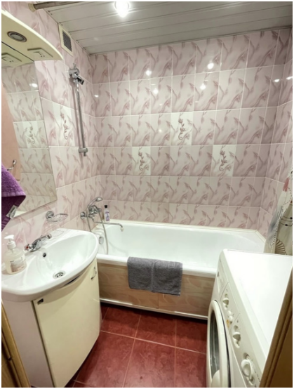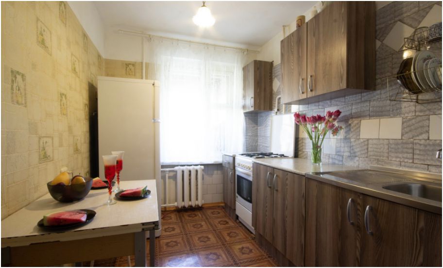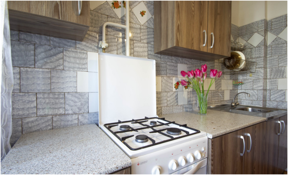 - Вся необходимая бытовая техника: холодильник, микроволновая печь, стиральная машина, газовая плита с духовкой, утюг, гладильная доска, фен.