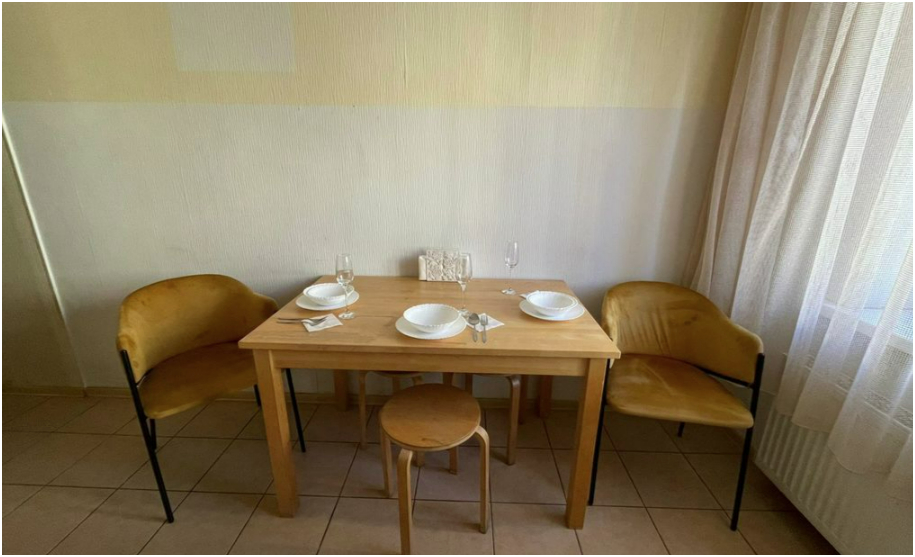 - Вся необходимая бытовая техника: холодильник, микроволновая печь, стиральная машина, плита, утюг, гладильная доска, фен.
