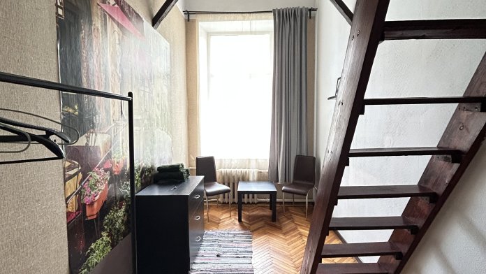 Мы предлагаем уютные комнаты для двоих с особенной изюминкой — спальным местом на втором ярусе и высокими 4‑метровыми потолками.