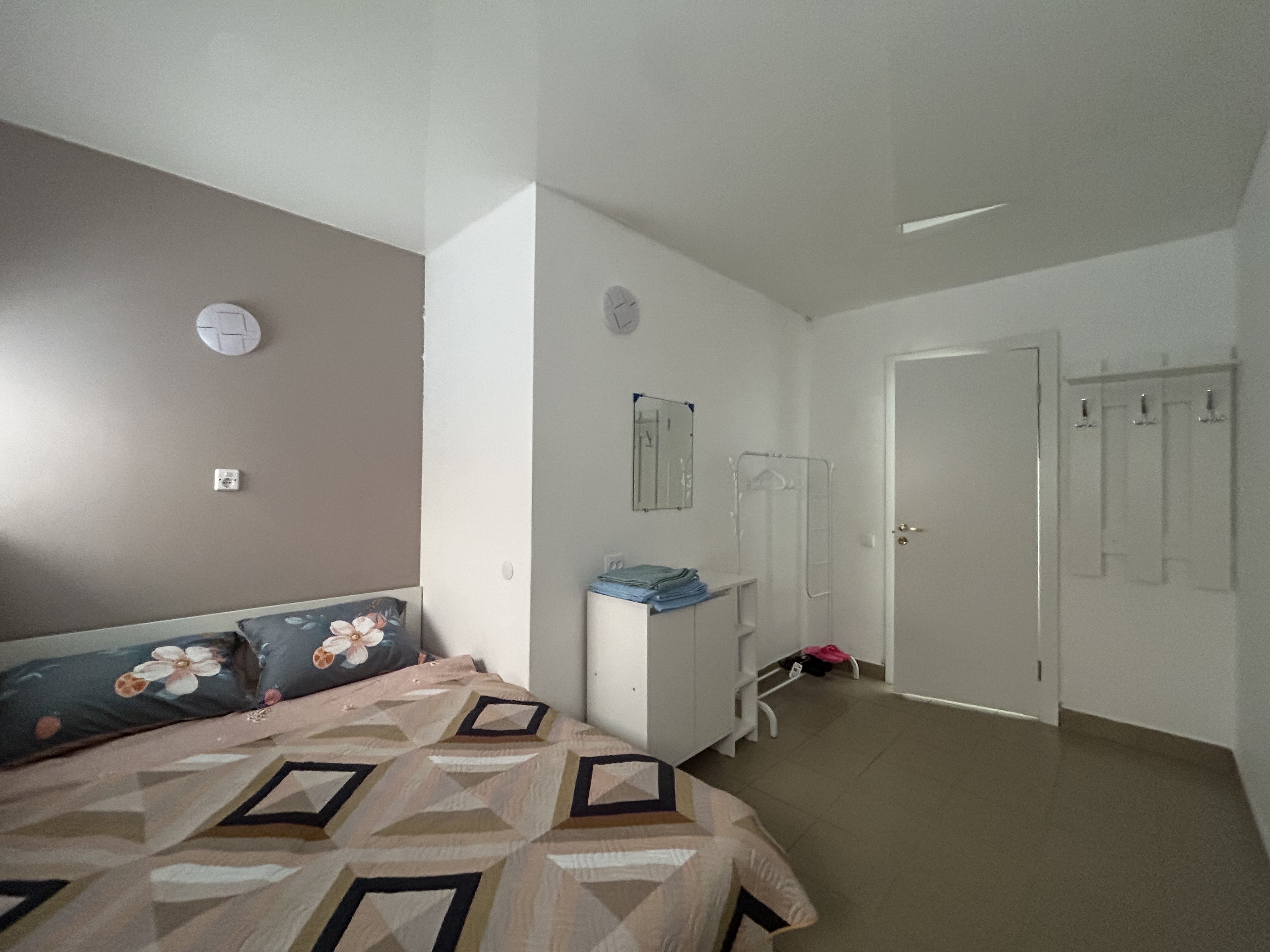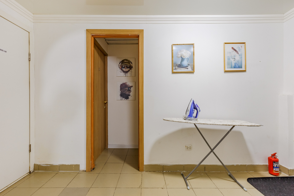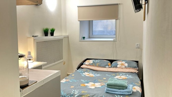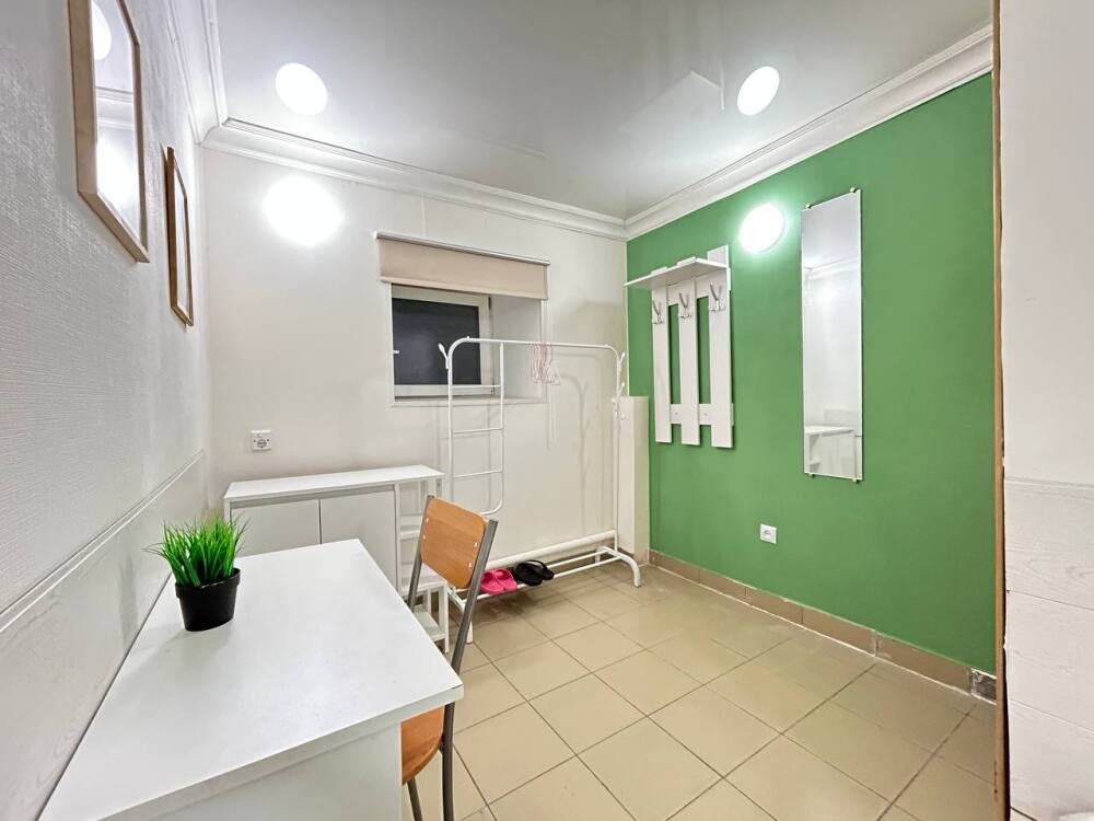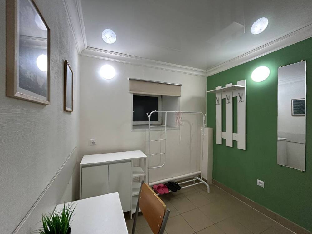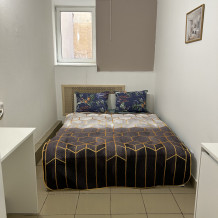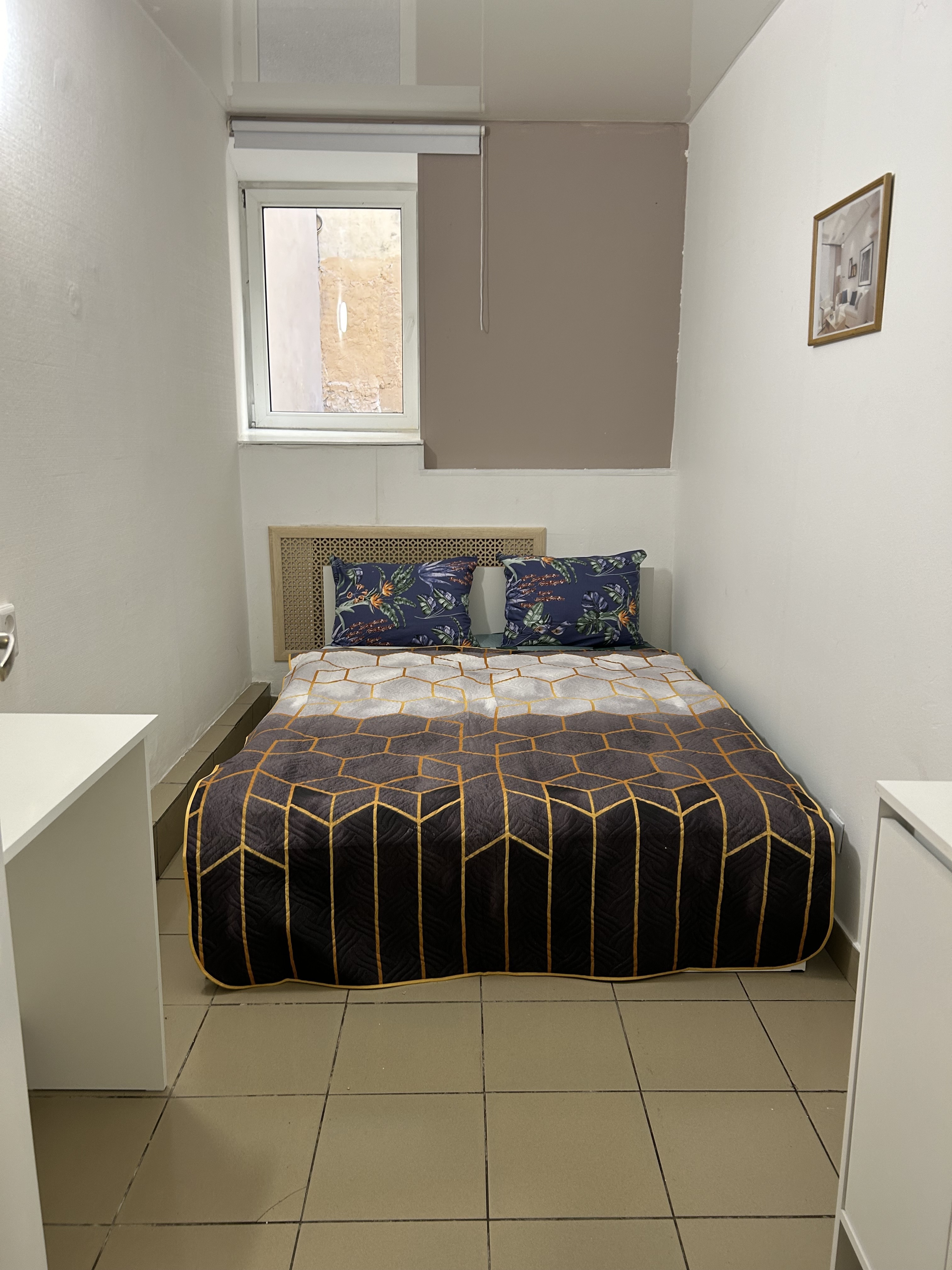 В комнате вас ждёт всё необходимое: удобная двуспальная кровать, комод для вещей, вешалка, стол и стул для работы или отдыха. Мы позаботились о мелочах: вас будут ждать свежее постельное бельё и чистые полотенца.