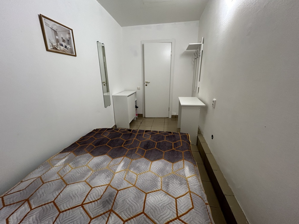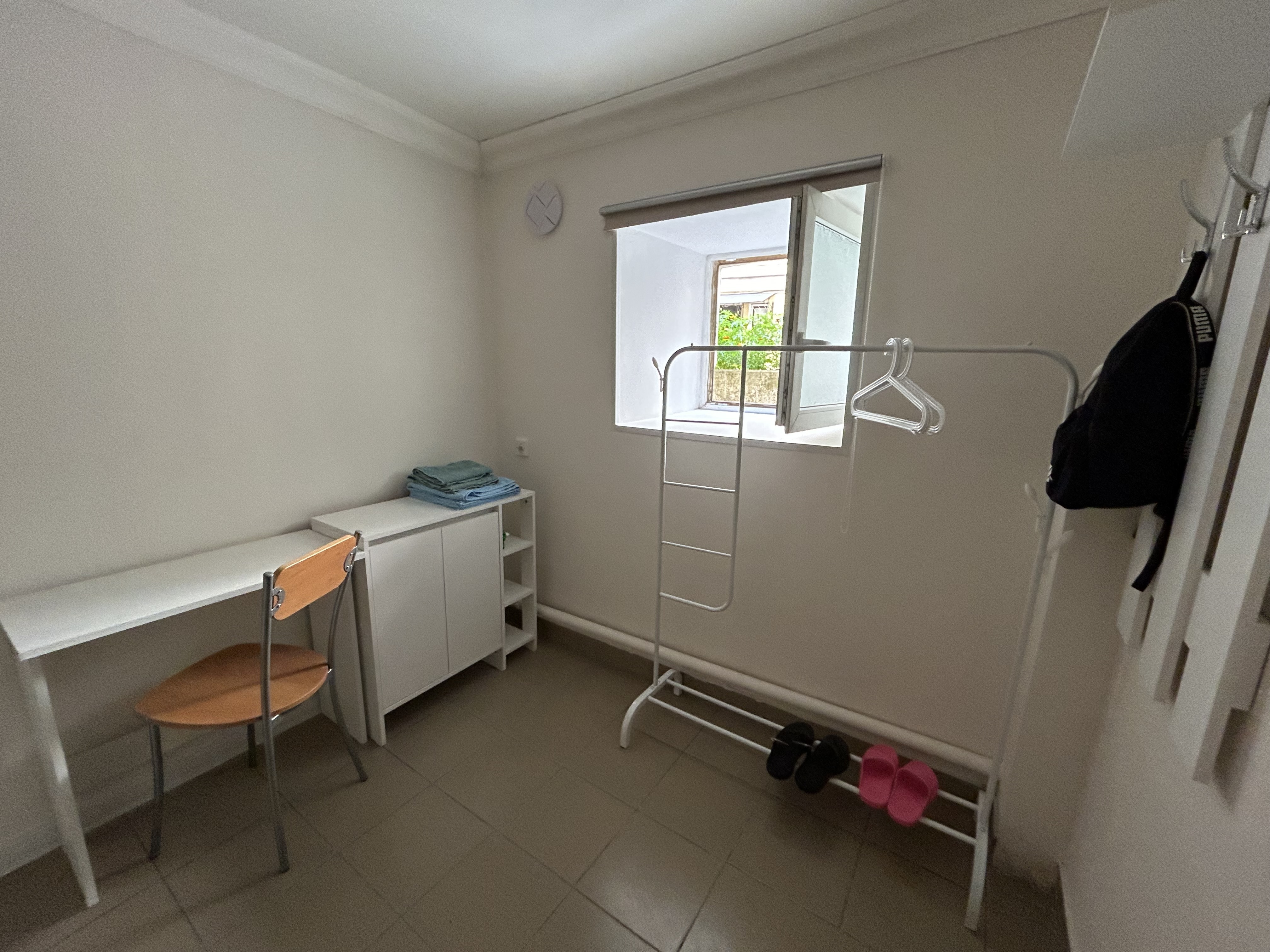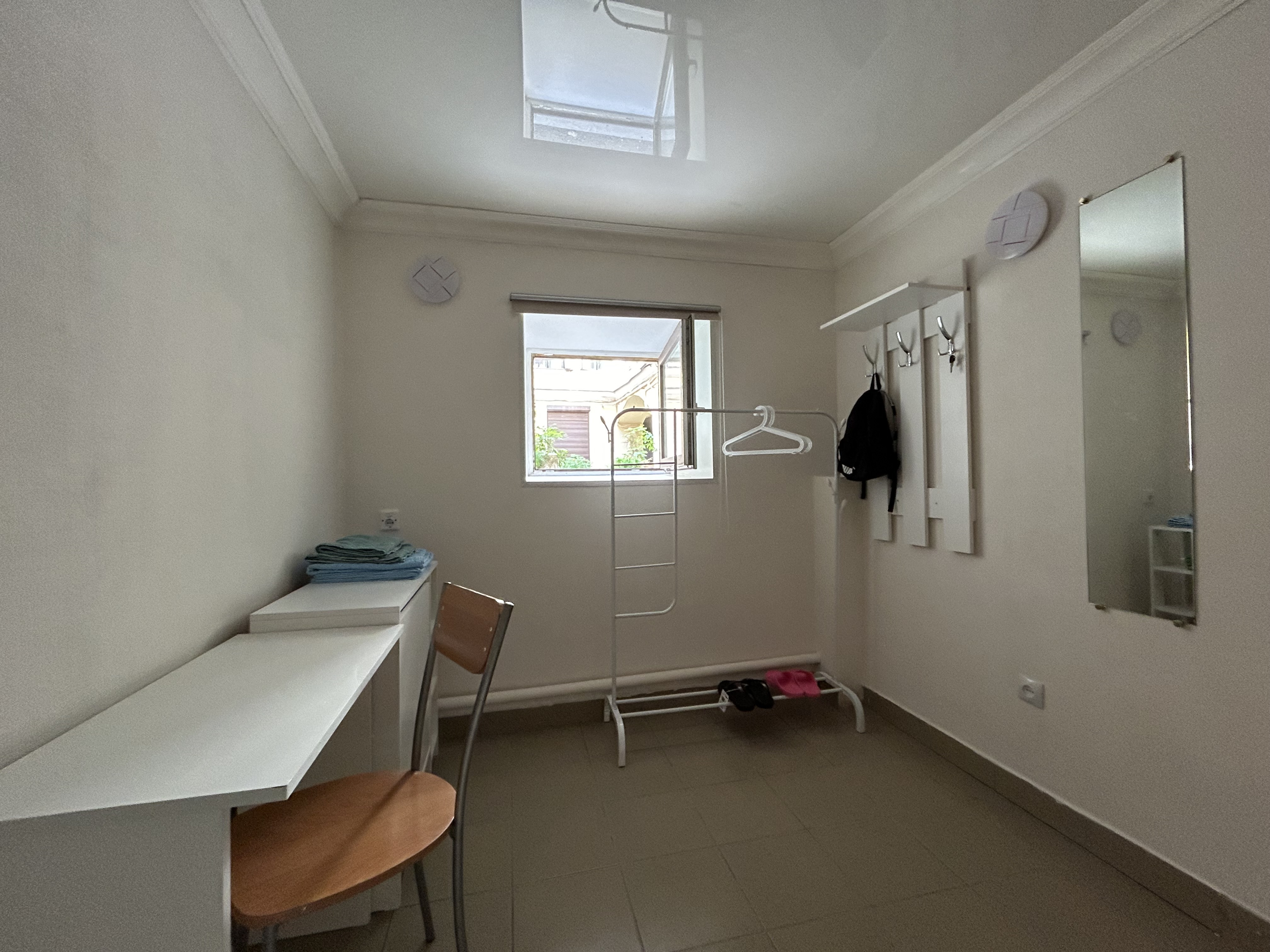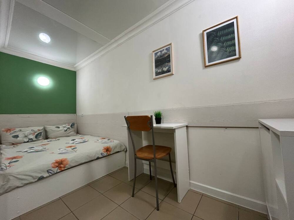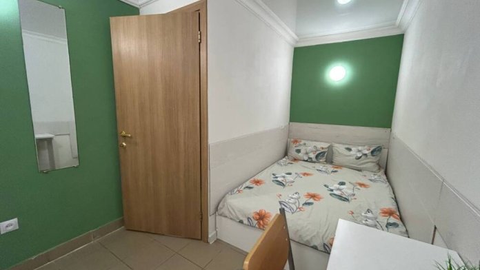 В комнате вас ждёт всё необходимое: удобная двуспальная кровать, комод для вещей, вешалка, стол и стул для работы или отдыха. Мы позаботились о мелочах: вас будут ждать свежее постельное бельё и чистые полотенца.