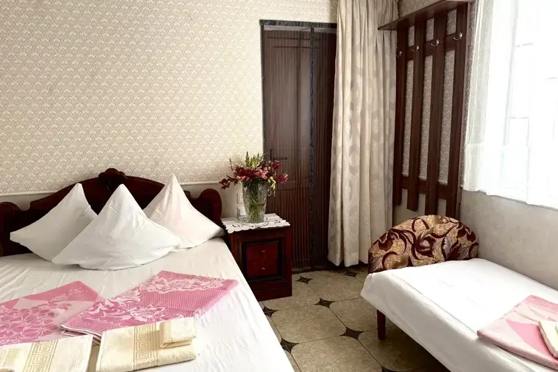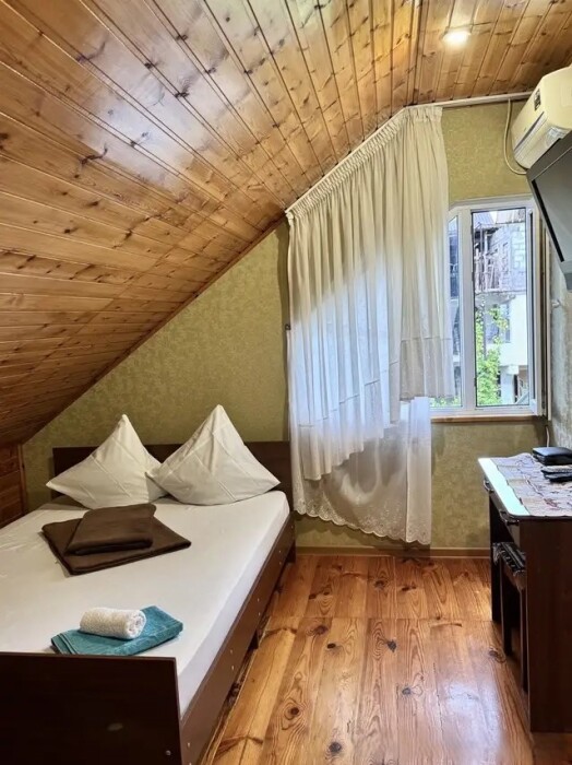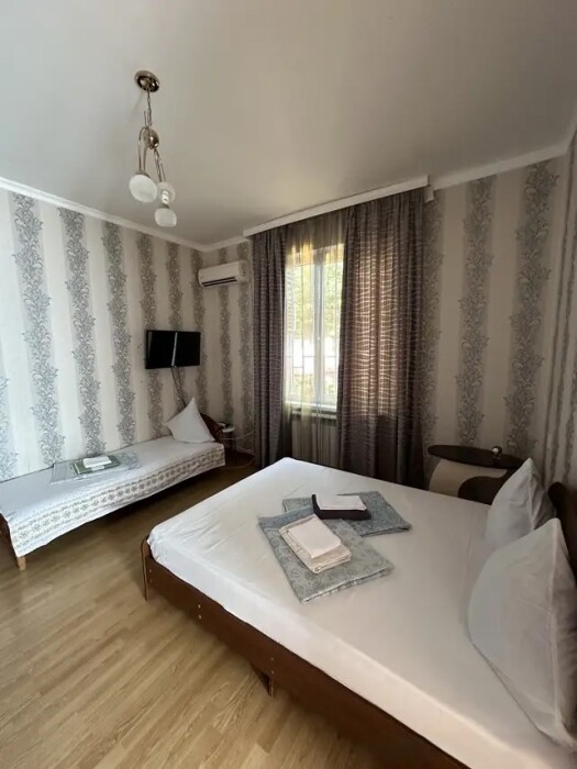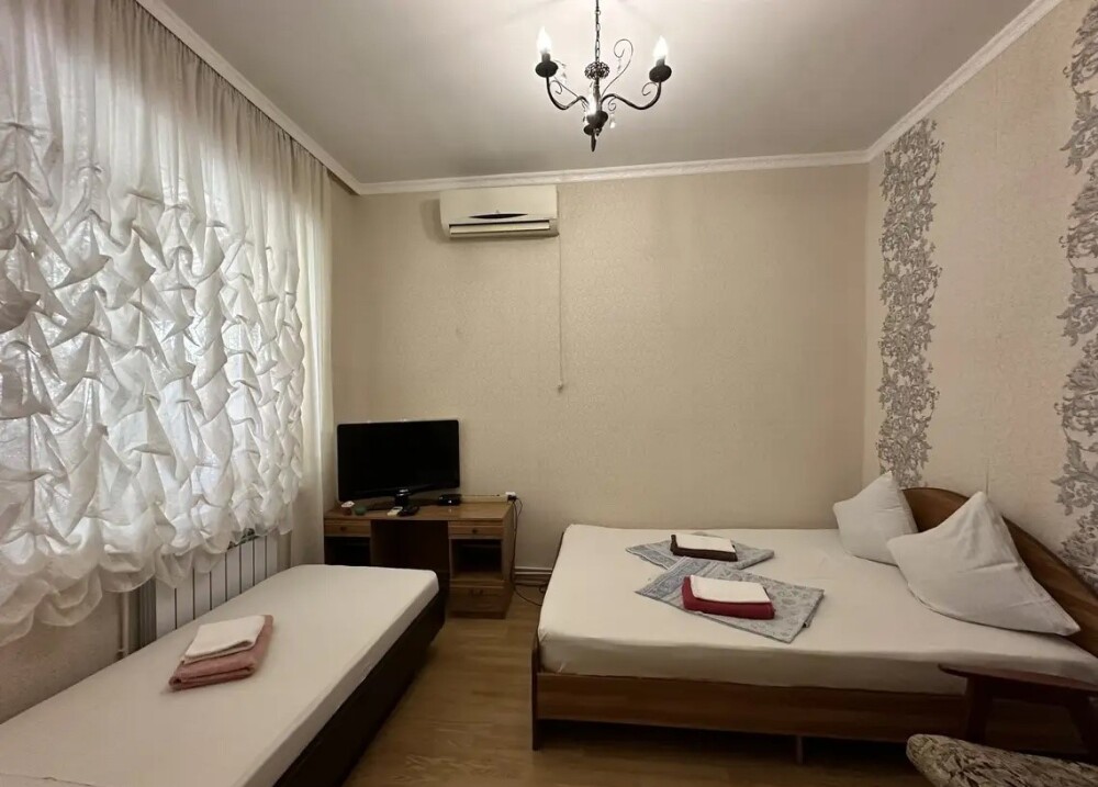 Все номера оборудованы телевизорами, кондиционерами. Есть категория Эконом (санузел общий) и Стандарт (санузел собственный).