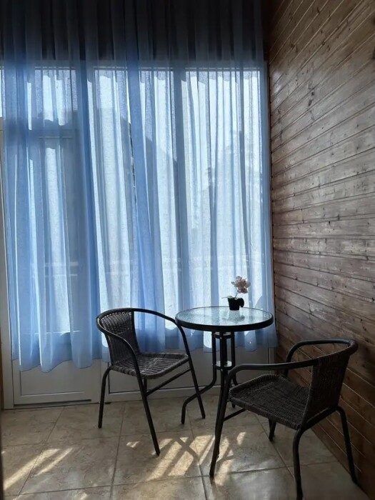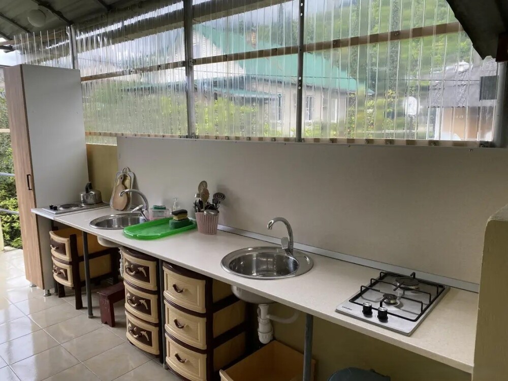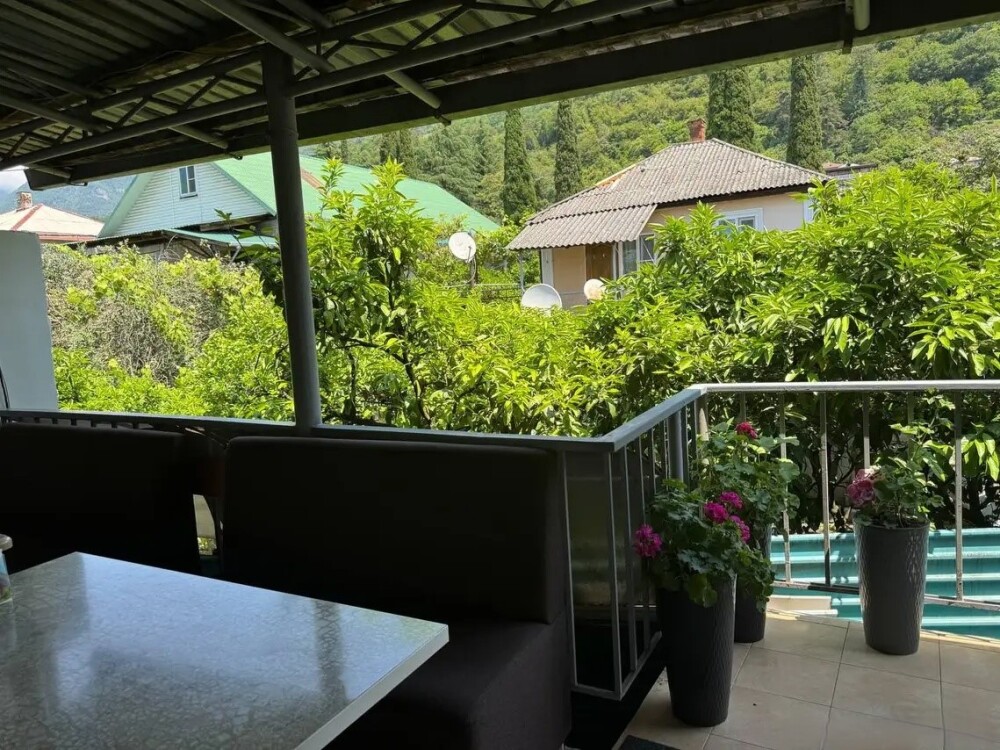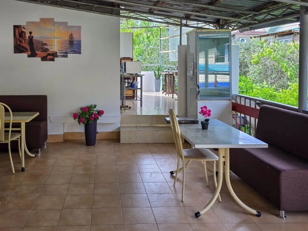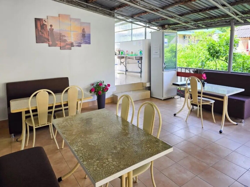 На территории располагается веранда, оборудованная под кухню, с холодильником, плитой, микроволновой печью, посудой, столами и диванами. В уютном зеленом внутреннем дворике с яркими тропическими цветами - мангал и тандыр. Есть бесплатный WI-FI.