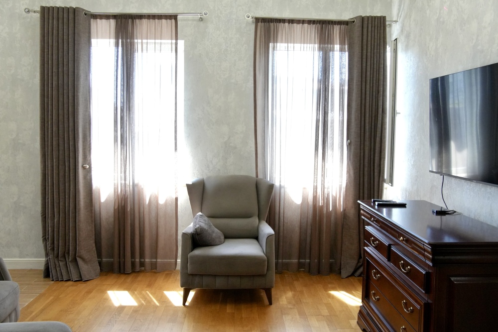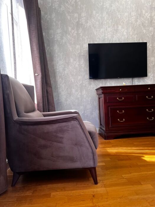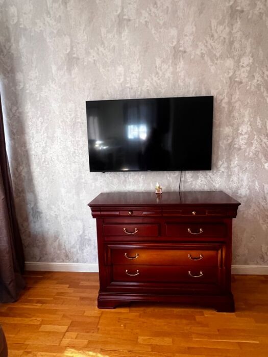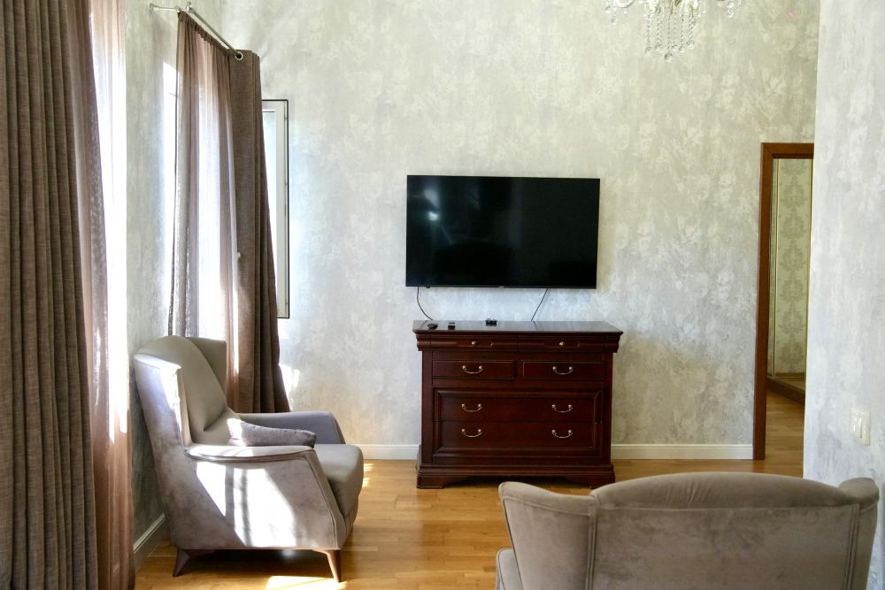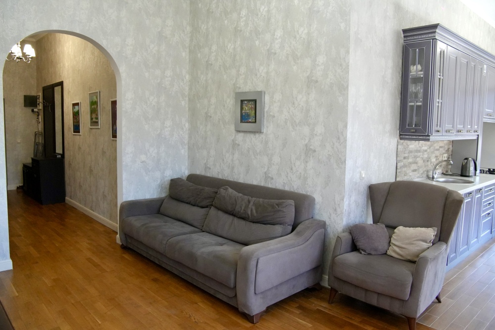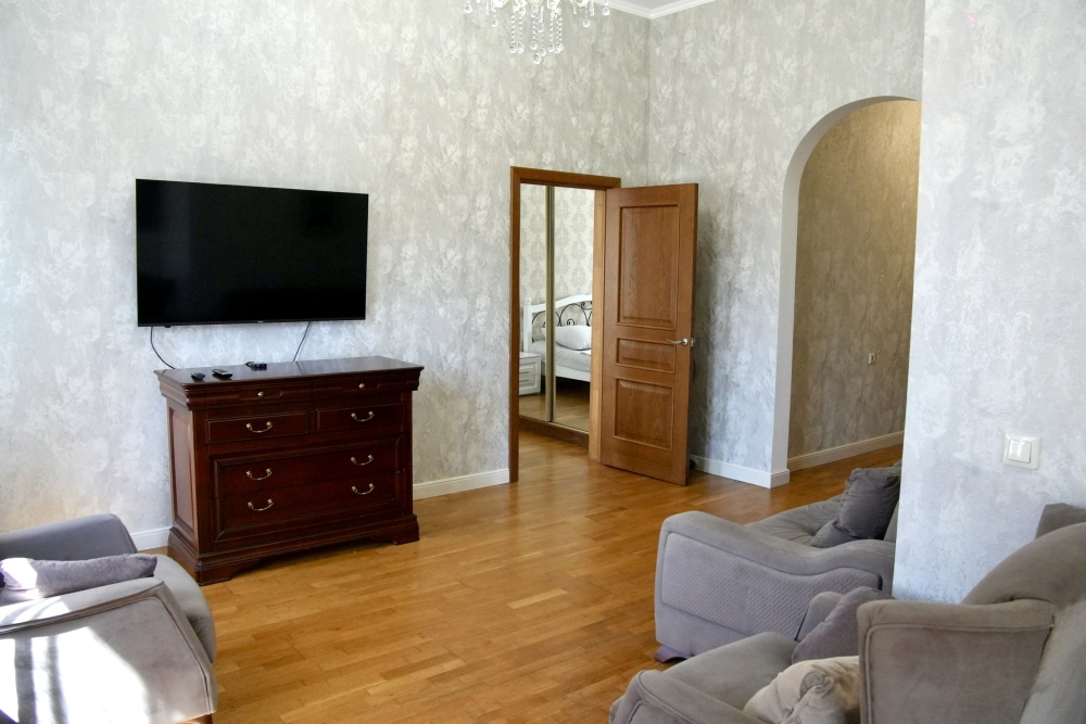 В квартире есть все для комфортного проживания, имеется одна большая двуспальная кровать, один раскладывающийся диван на два места, постельное белье для всех гостей, полотенца,уютные кресла , огромный встроенный шкаф с зеркалами для одежды, утюг, москитные сетки на окнах, кондиционер, телевизор, кабельное ТВ, интернет, wi-fi. Дизайнерский кухонный гарнитур создает особую атмосферу комфорта, имеется большой обеденный стол. Есть все необходимое для приготовления пищи: электрическая плита, набор столовых принадлежностей, посуда, холодильник, чайник, духовой шкаф. В ванной есть сушилка для белья, стиральная машина.