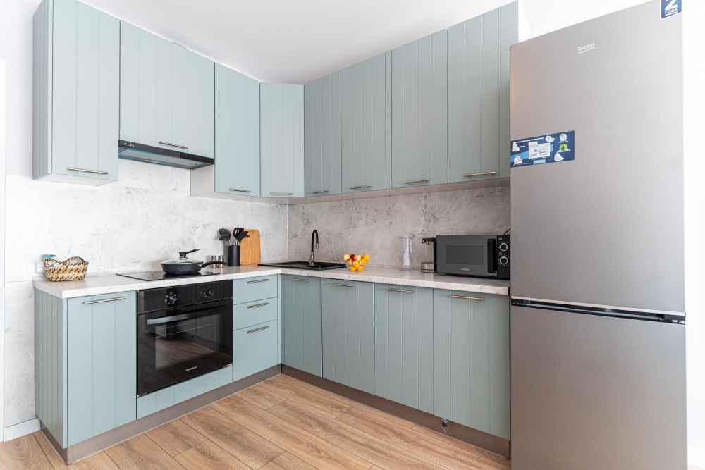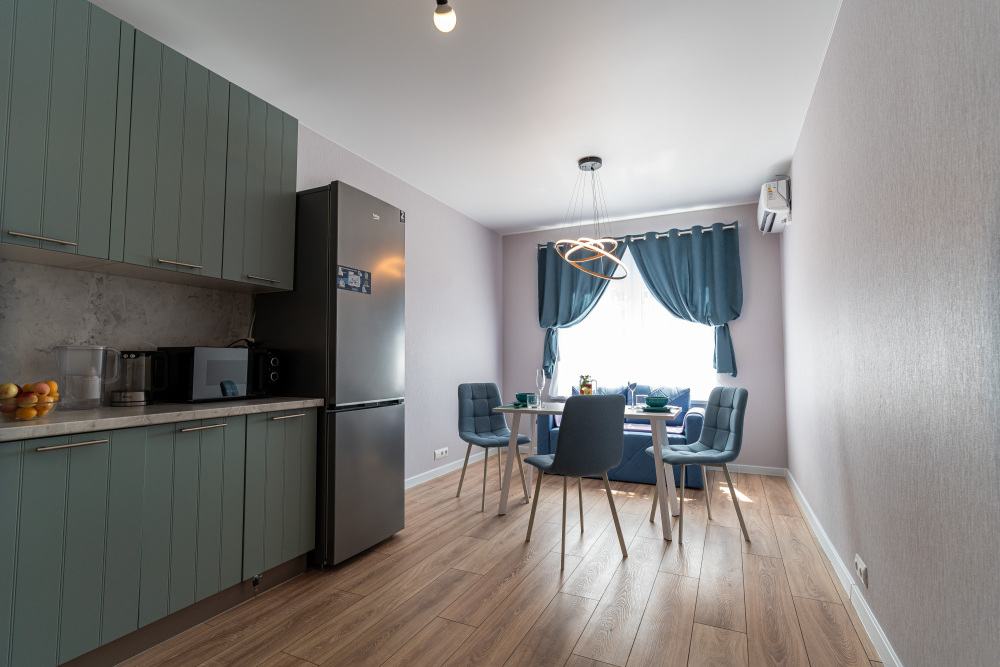 - Техника: Wi-Fi (100 Мбит/с), SMART-TV, стиралка, микроволновка, кондиционер.