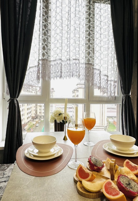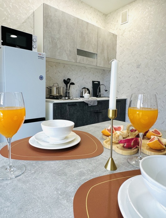- кухня с необходимой техникой, посудой, столовыми приборами;
