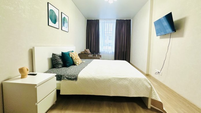 Уютная однокомнатная квартира в ЖК «Мега-Победа 2». Большой двор, парковка у дома, детская и спортивная площадки. Рядом: ТЦ «Мега» Адыгея, Ашан, Леруа Мерлен, Метро, Унидом, Столплит, автосалоны и аквапарк «Ниагара», аэротруба «Летяга».