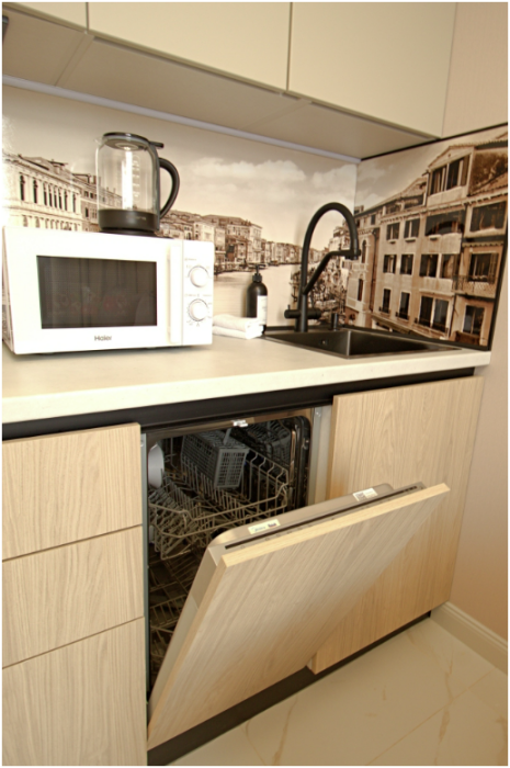 Кухня: полностью укомплектованная кухня с индукционной плитой и микроволновой печью, где Вы можете приготовить любимые блюда.