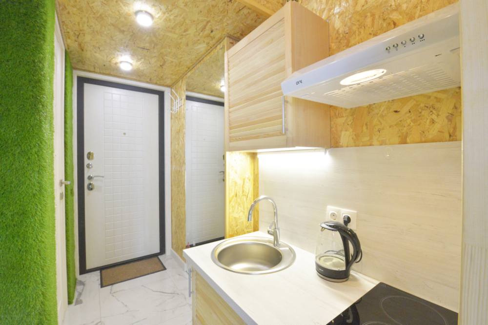 - плита, микроволновая печь, вытяжка, чайник, холодильник;