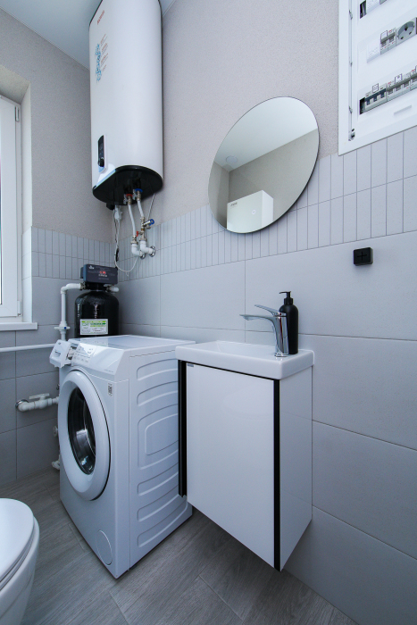 Панорамные окна в 2 этажа, Телевизор, Бесплатный Wi-Fi, Стиральная машина, Фен, Утюг, Пылесос, Водонагреватель, Душ, Совмещенный санузел и отдельный туалет.