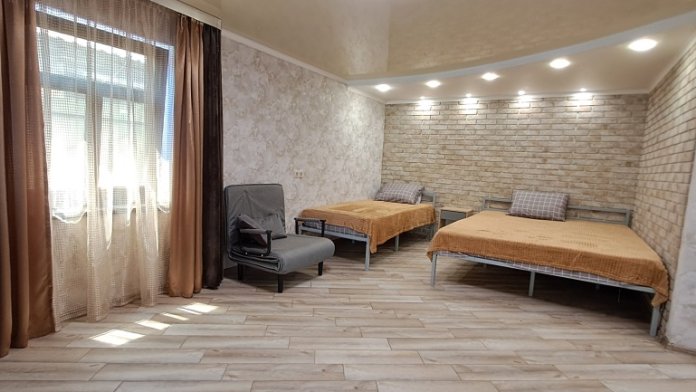 Две комнаты-Спальная и кухня-гостинная, спальные места — 6 шт. (двухспальная и односпальная кровати, диван. раскладное кресло);