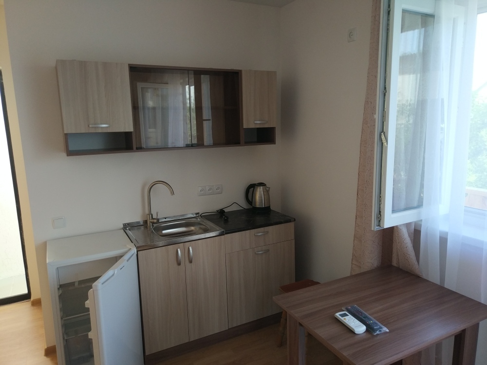 Каждый номер с собственной кухней, кондиционером, TV, WI-FI, санузлом, душем (30-50 кв.м).