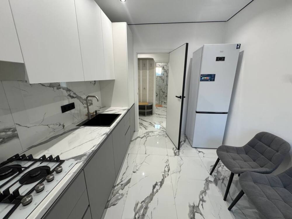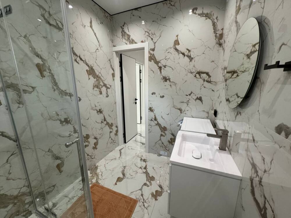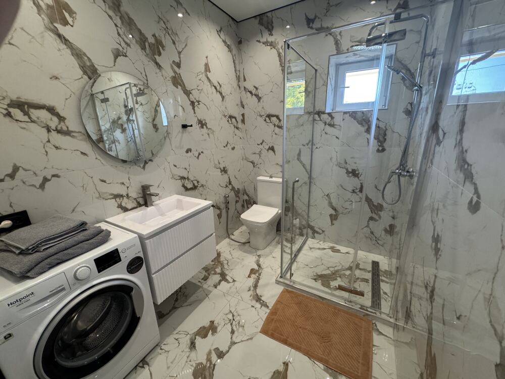 Дом одноэтажный, с 2 комнатами и дорогим современным ремонтом. Спальная комната оборудована удобной двуспальной кроватью и вместительным шкафом для хранения вещей. Гостиная оснащена большим диваном и телевизором с кабельным тв. Кухня просторная, с современной бытовой техникой, включая холодильник и плиту. Санузел совмещённый, оформлен в том же стиле, что и остальная часть дома, с душевой кабиной и стиральной машиной.