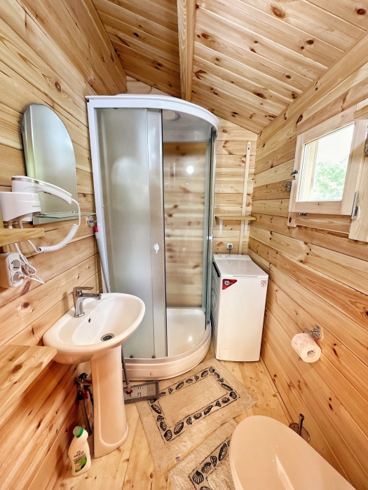 - Душ, туалет, фен, кондиционер, стиральная машинка, утюг, гладильная доска – всё для комфорта.