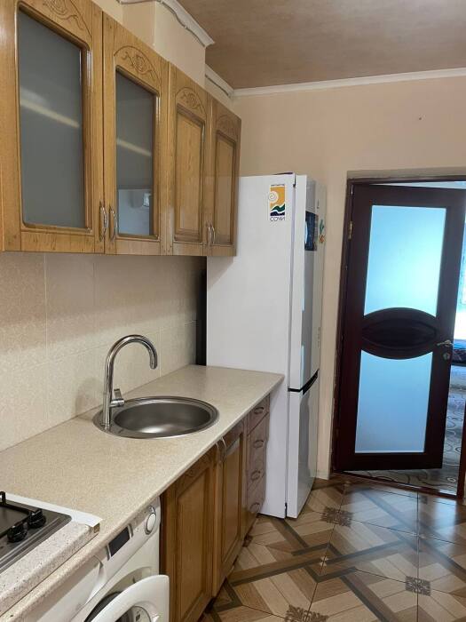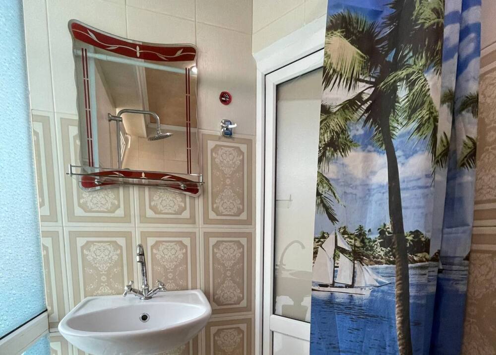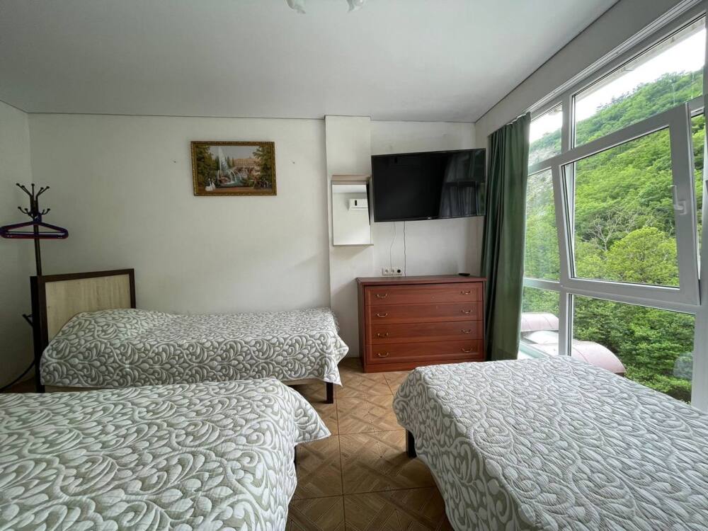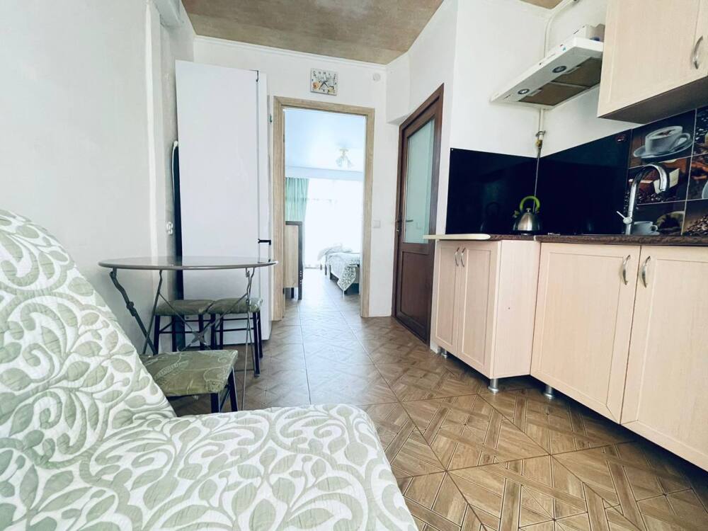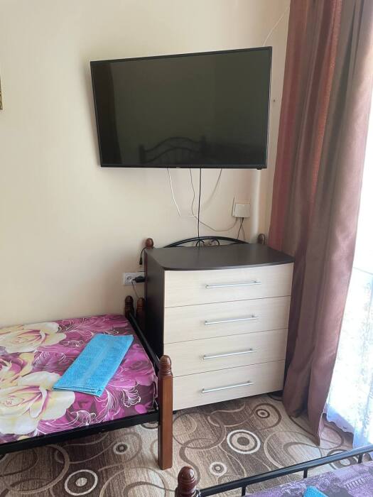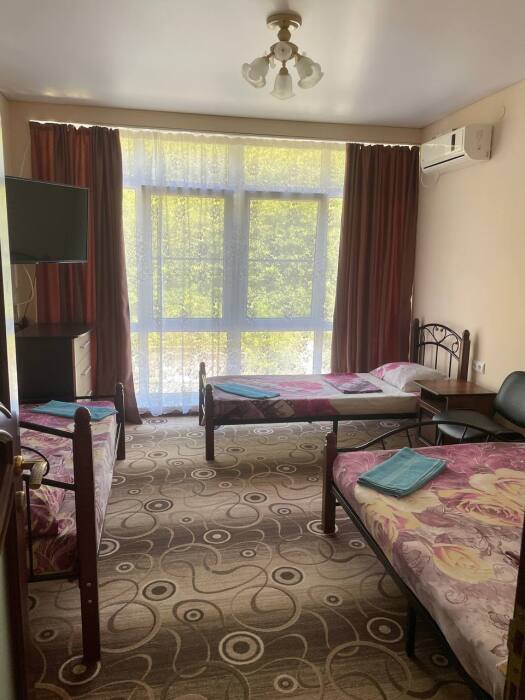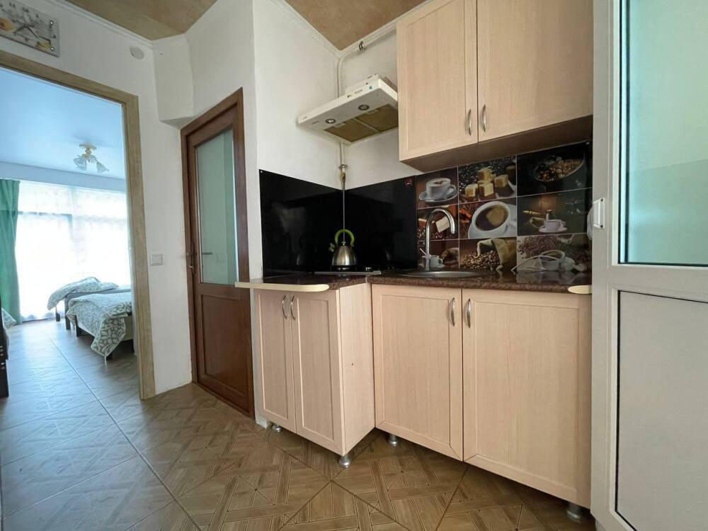 Семейный номер с кухней в номере по типу однокомнатной квартиры. В номере имеются большой телевизор плазма, кондиционер, огромный холодильник, кухонные принадлежности.
