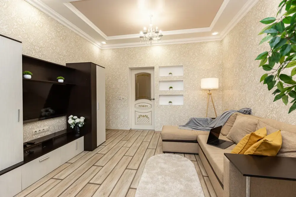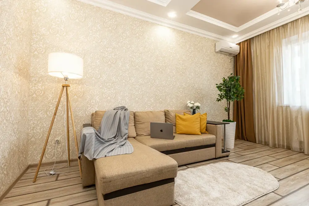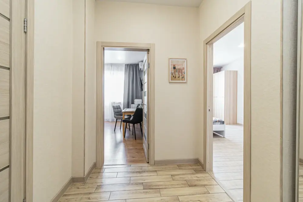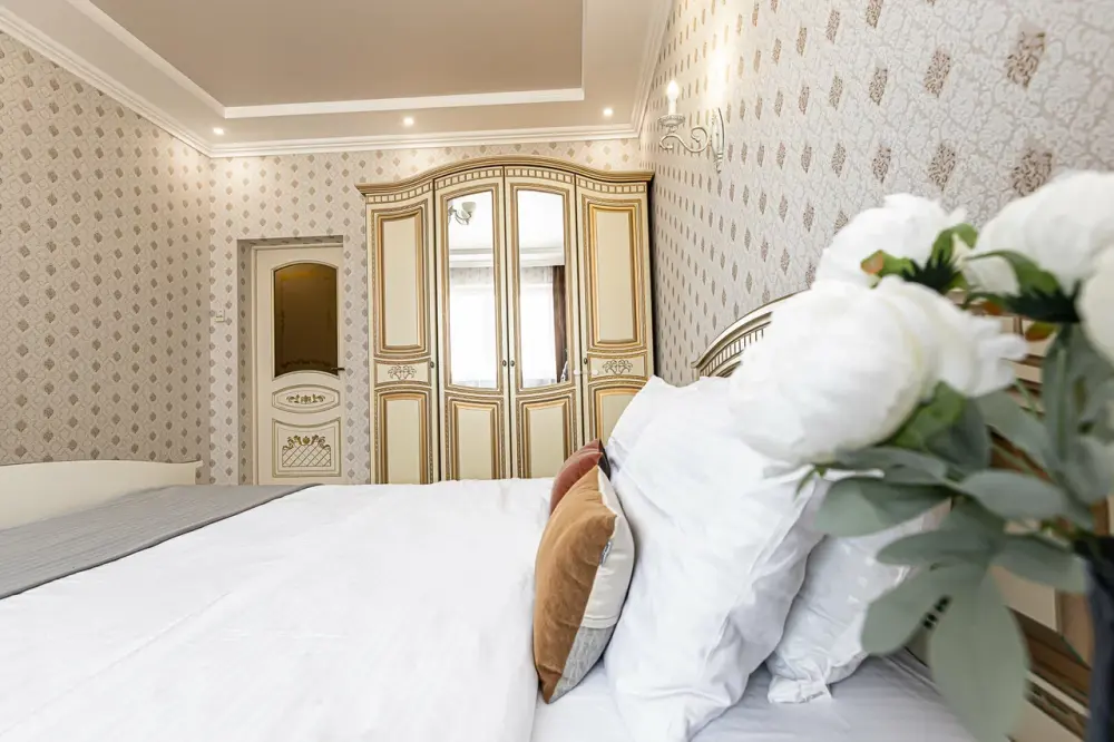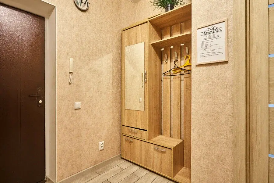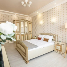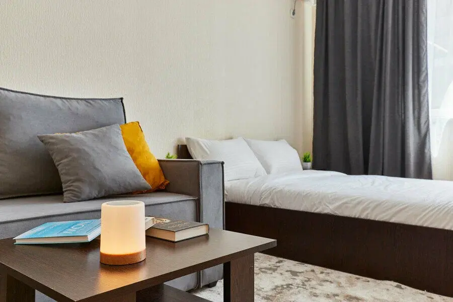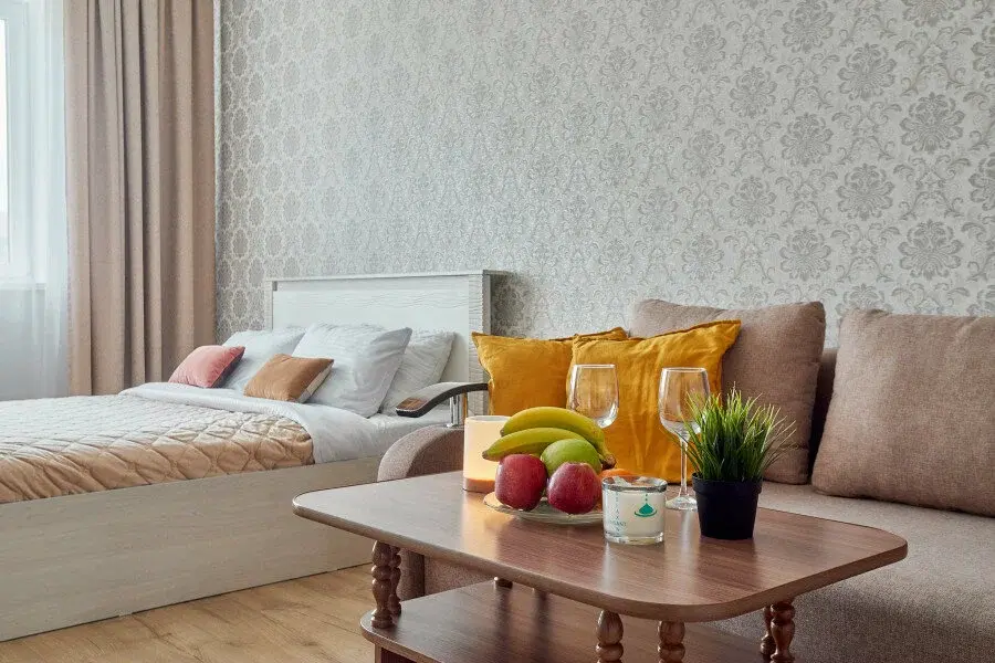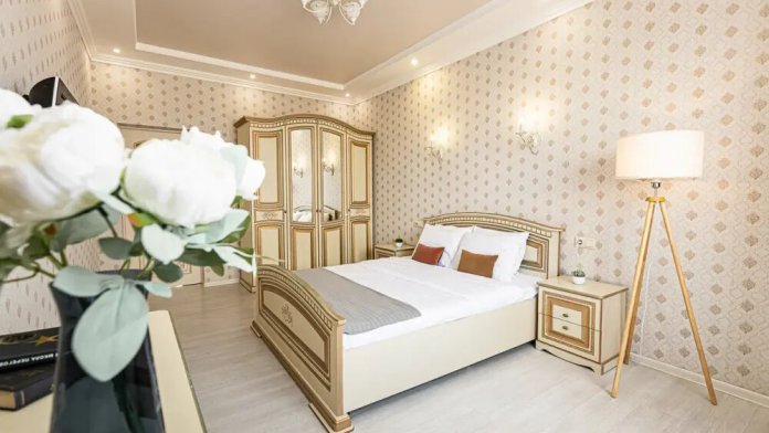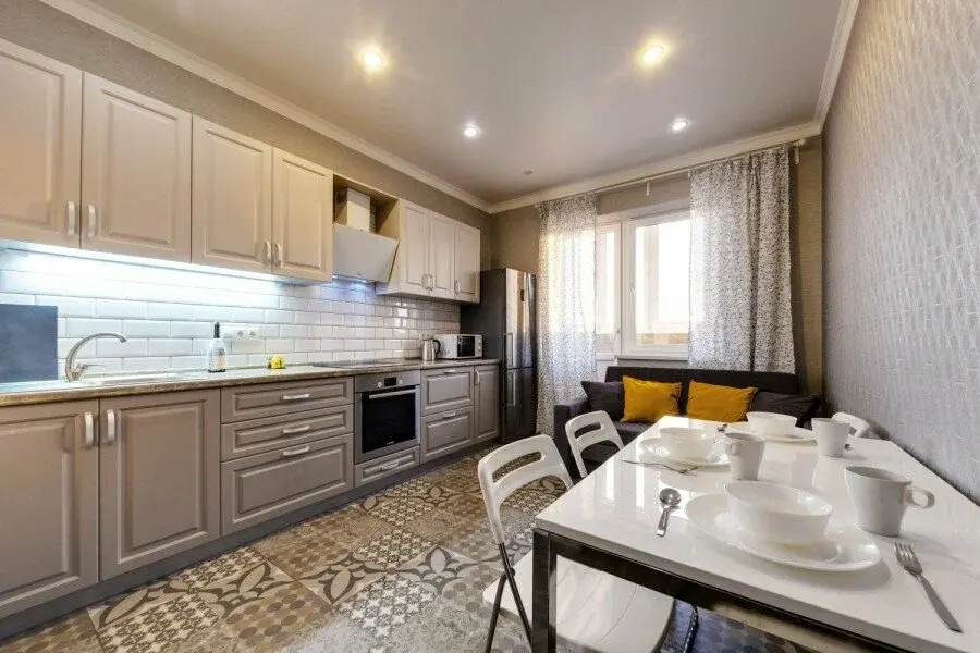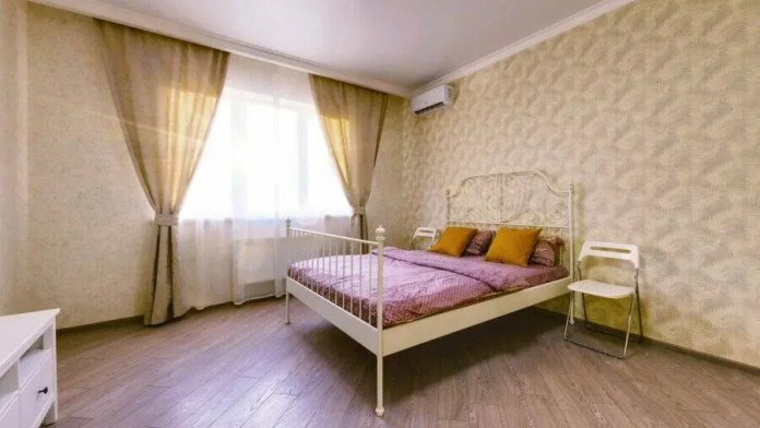 В апартаментах есть всё, чтобы вам было уютно и комфортно как дома. В квартирах выполнен европейский ремонт и создан стильный интерьер. Панорамные окна открывают чудесный вид на центр города. Современная кухня оборудована всей необходимой бытовой техникой (холодильник, посудомоечная машина, микроволновая печь, индукционная плита с сенсорным управлением, чайник), в ней также имеются посуда и столовые приборы. В комнате стоит большая удобная кровать с ортопедическим матрасом , на кухне раскладывающийся двухспальный диван.