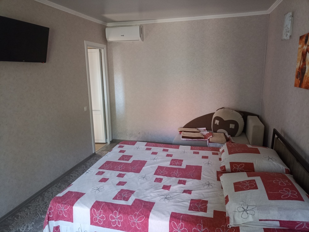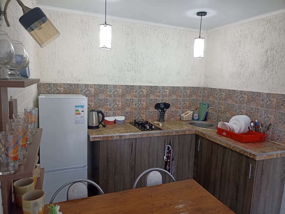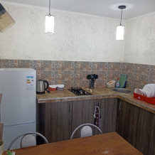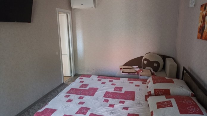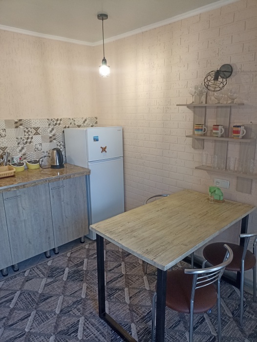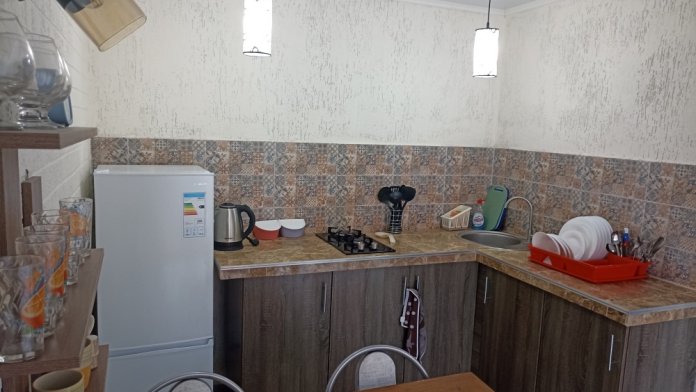 На территории гостевого дома находится 4 однокомнатных домика. Каждый дом оборудован отдельным входом, кухней со всем необходимым, санузлом.