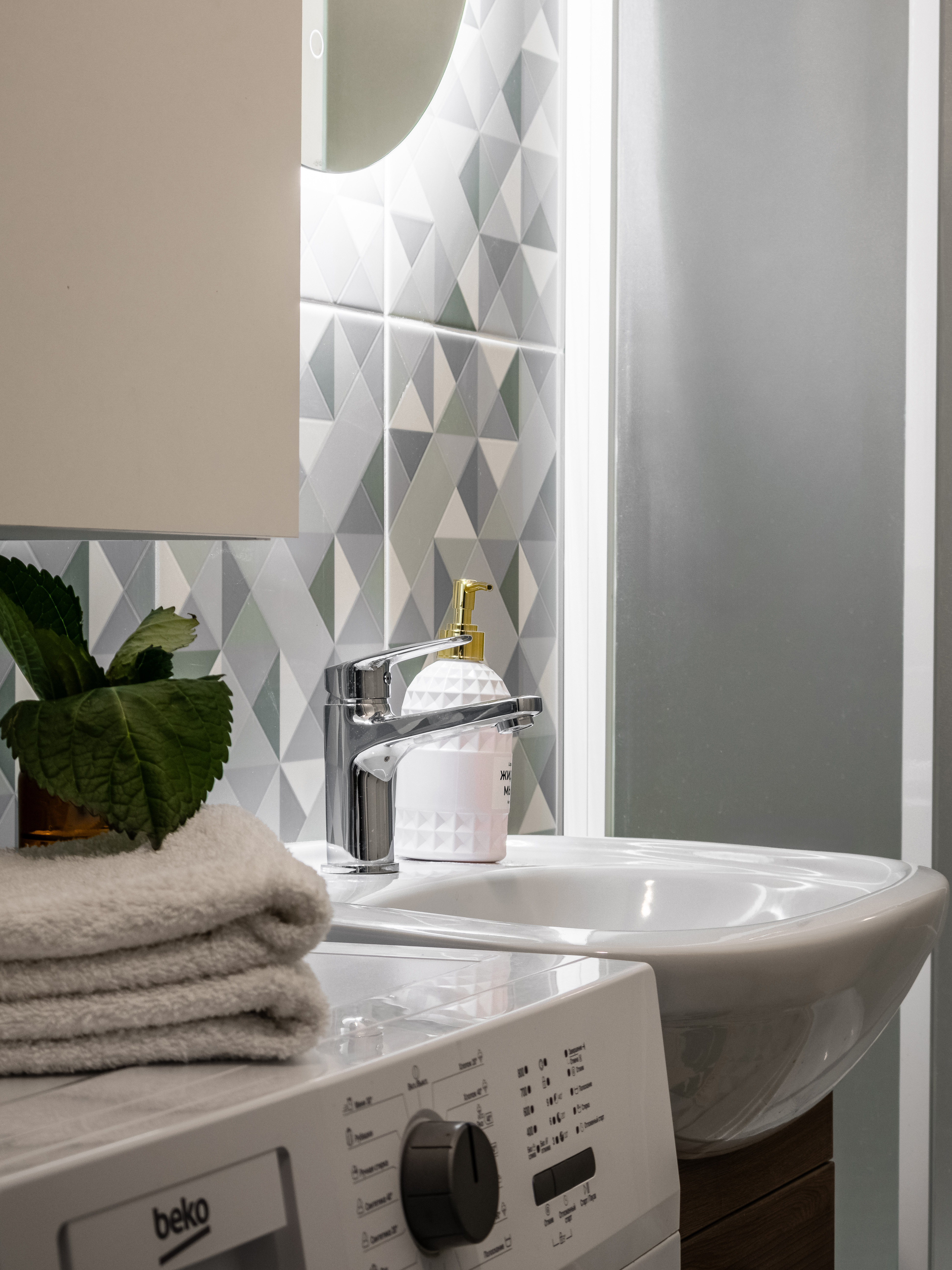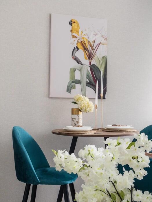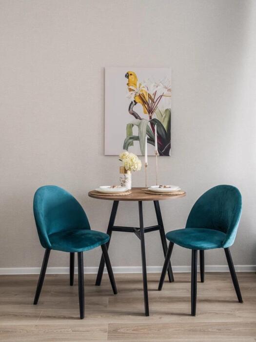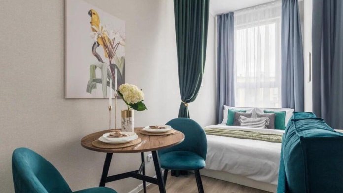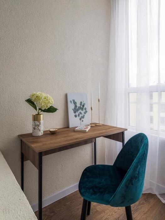 - Современный дизайн в спокойных тонах с акцентами изумрудного цвета создает атмосферу уюта и расслабления;