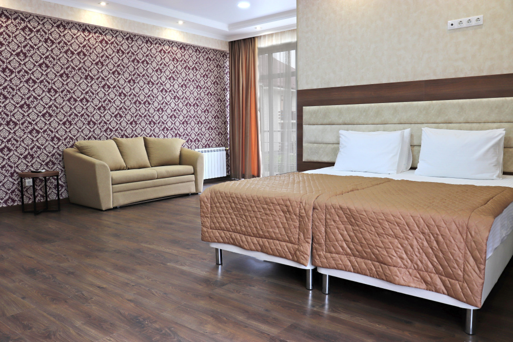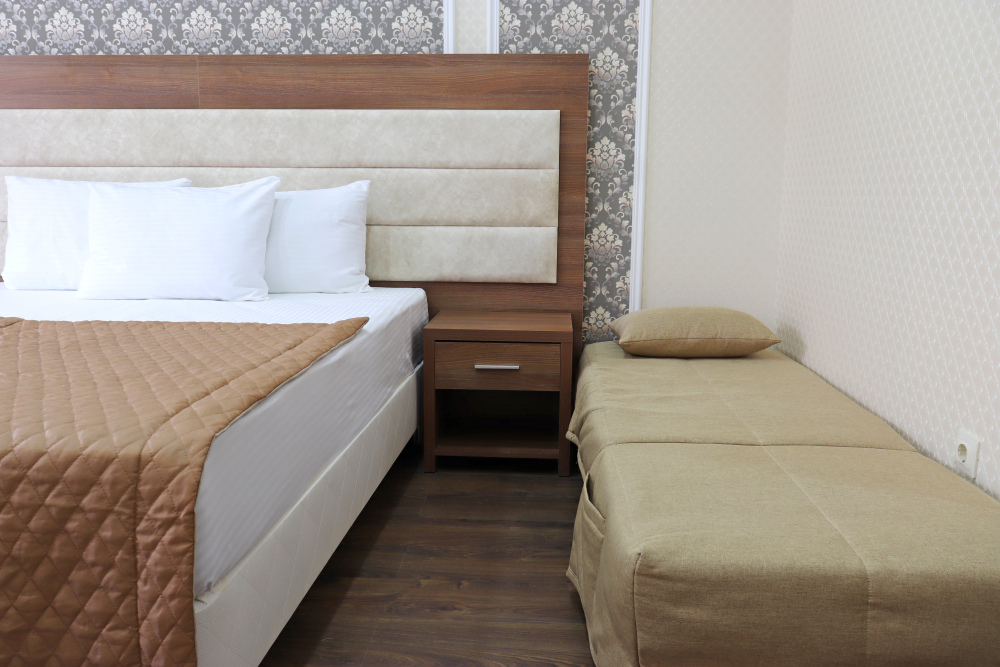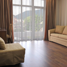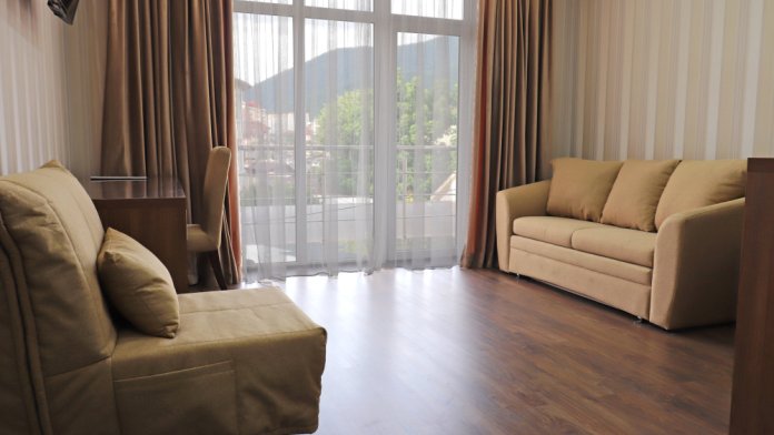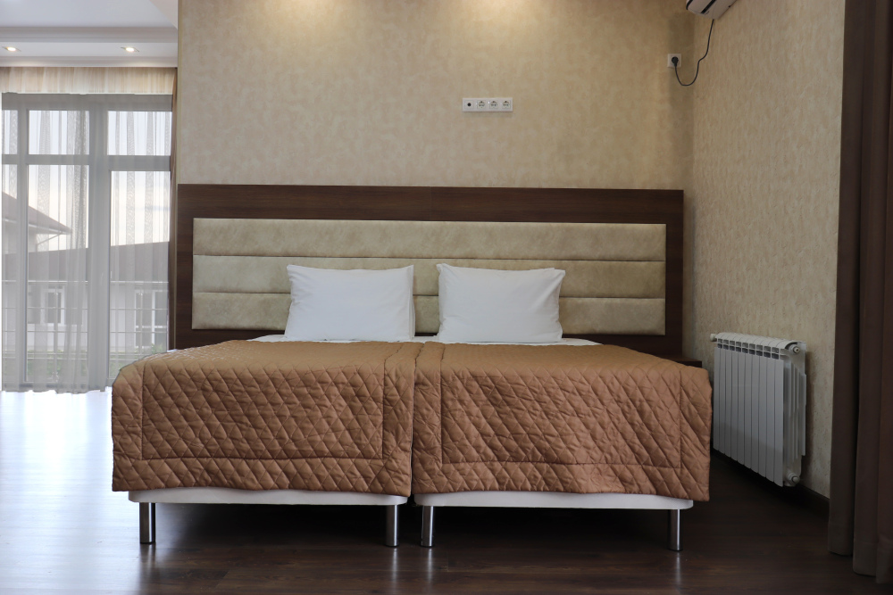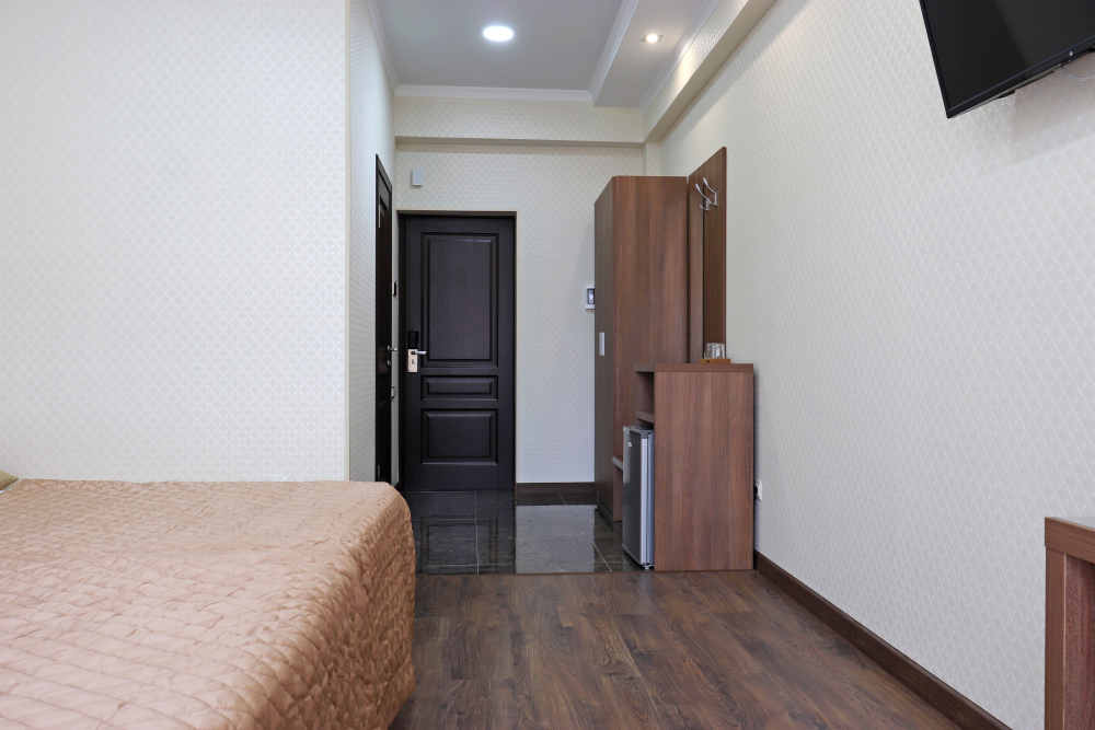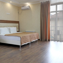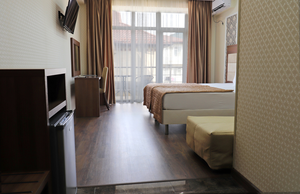 К размещению представлены светлые и просторные номера различных категорий: Стандарт, Комфорт, Семейный 2-комнатный. Все они оборудованы: балконом, удобными спальными местами, качественной мебелью и современной техникой, LED-телевизором, мини-холодильником, сплит-системой, сейфом, феном, индивидуальной ванной и санузлом с туалетными принадлежностями. Интерьер комнат продуман до мелочей.