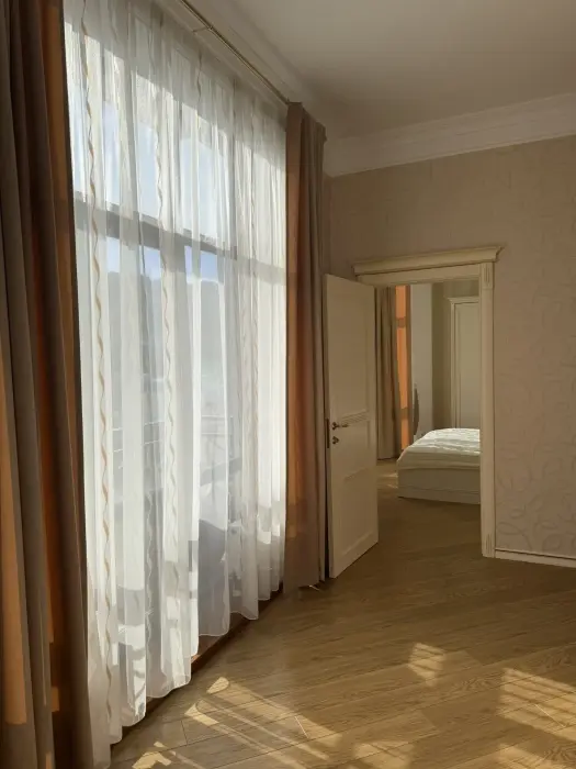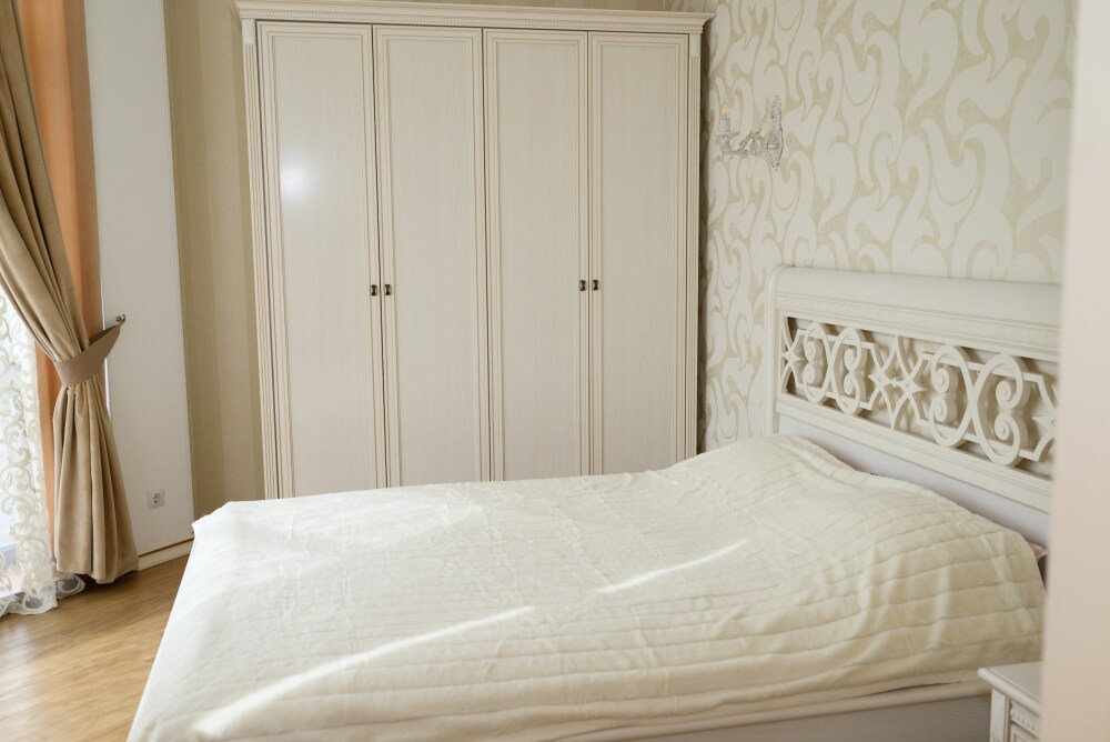 - Две изолированные комнаты: просторная спальня с большой двуспальной кроватью и гостиная с комфортным диваном.
