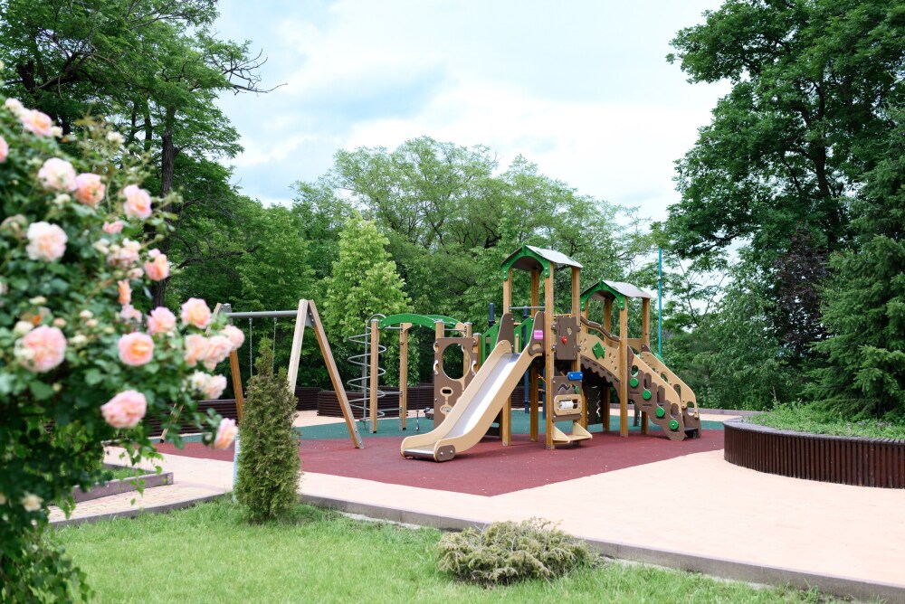Территория комплекса украшена зелеными насаждениями и декоративным фонтаном, создавая атмосферу покоя и релаксации. Гостям предлагается бесплатное парковочное место, бесплатный высокоскоростной Wi-Fi и доступ к источнику минеральной воды.
