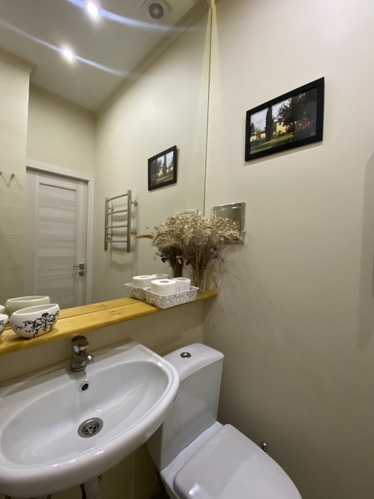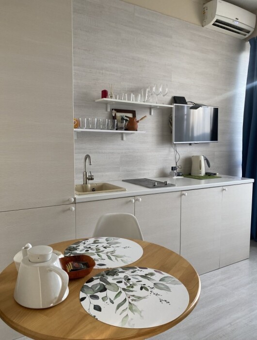 В наличии вся необходимая техника; (тв, холодильник, кондиционер, стиральная машина, плита, духовка, утюг, гладилка, сушкилка, фен) комплект посуды, высокоскоростной интернет.