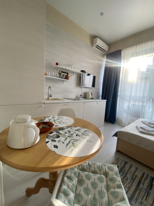 ️Уютная студия с видом на море и горы. Студия после полного косметического ремонта, проведенного в октябре 2022 года. Комфортные теплые электрические полы во всей квартире. Чудесный просторный балкон с диванчиком и креслами - чудные виды: на горы и парк и боковой- на море. Радость наслаждения от вкусного морского воздуха, возможностью утром выпить чашечку кофе, в обед посидеть с ноутбуком, а вечером насладиться бокалом вина, эмоции ждут Вас.