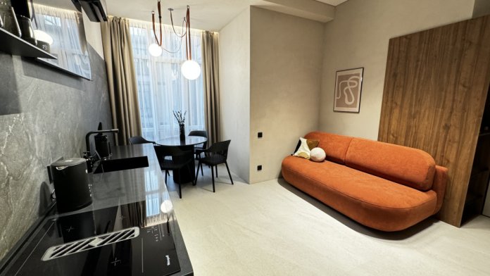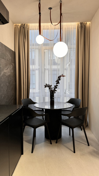 - полностью оборудованная кухонная зона (СВЧ, стильная посуда, столовые приборы, бокалы для вина);