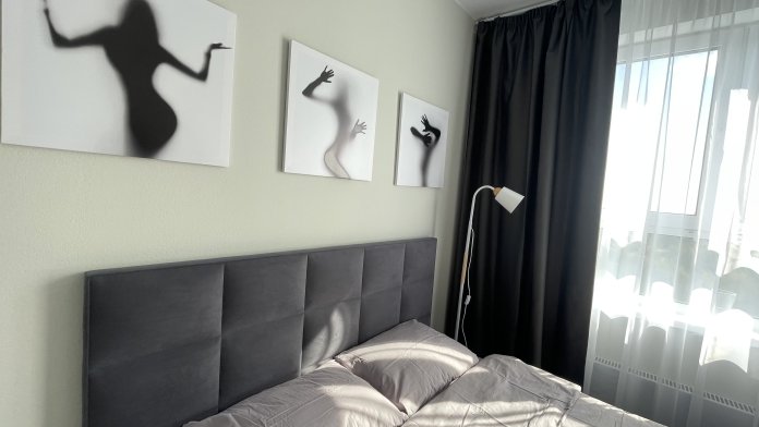 Квартира оборудована всем необходимым для комфортного проживания 2-4 человек. Двуспальная кровать с ортопедическим матрасом и двуспальный диван. Подушки и одеяла гипоаллергенные. Качественное чистое постельное белье и полотенца для всех гостей.