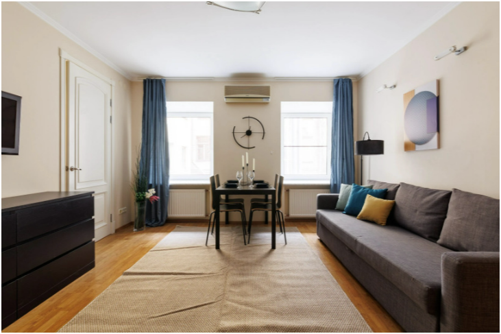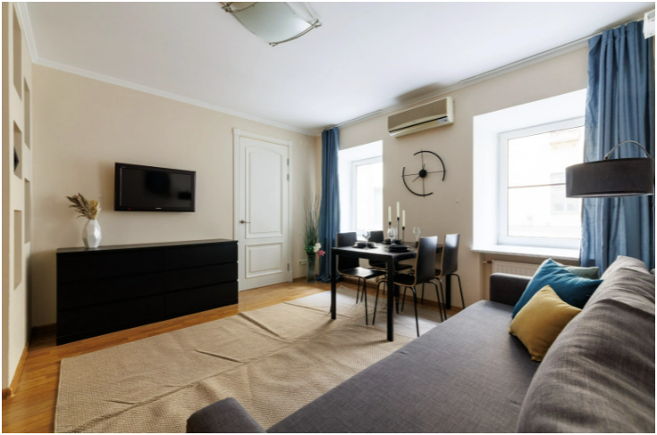 Спальные места: двуспальная кровать шириной 180 см, двуспальная кровать шириной 160 см, два раскладных двуспальных дивана шириной 160 см и 140 см.
