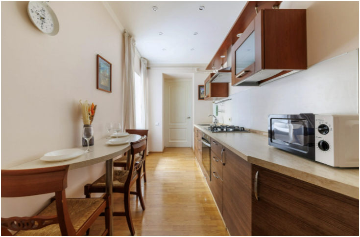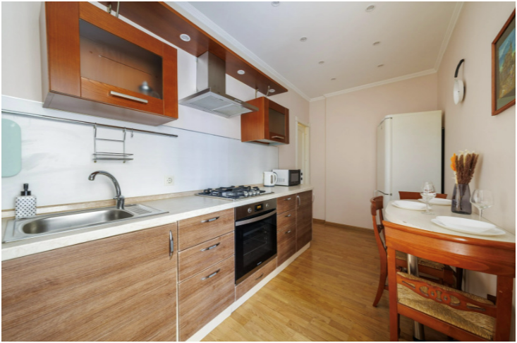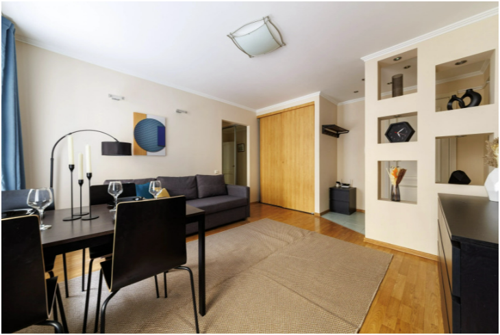 Две изолированные спальни, гостиная, отдельная кухня, раздельный сан. узел с душем и ванной.