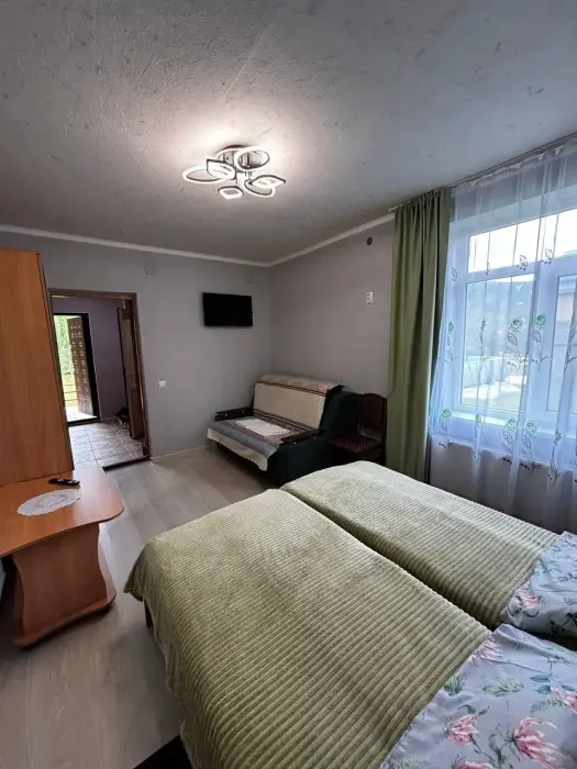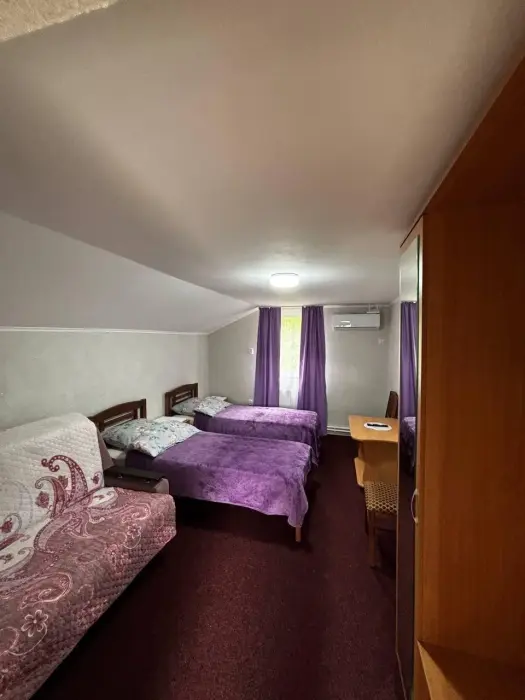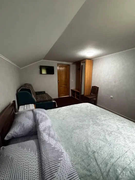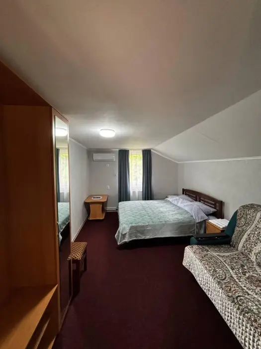 В номере Вас ждут: уютная спальня, санузел, кондиционер и телевизор. Всё необходимое для комфортного отдыха: полотенца, фен, горячая и холодная вода.