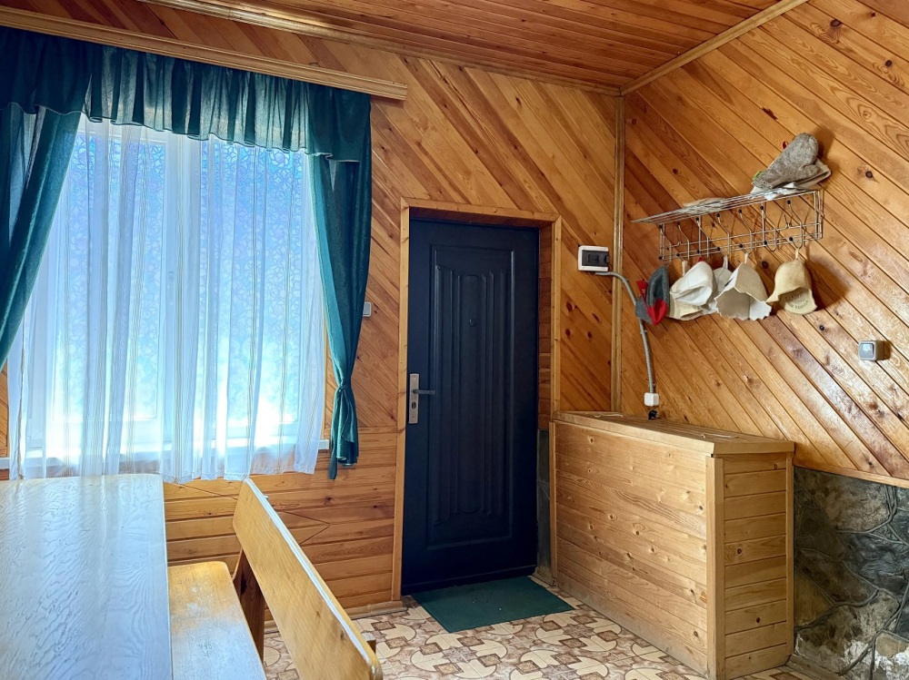 Для гостей четырёх номеров доступен общий зал, где можно: — разогреть еду в микроволновке, — хранить продукты в холодильнике, — устроиться за обеденным столом с видом на горы, — посмотреть телевизор вечером всей семьёй.