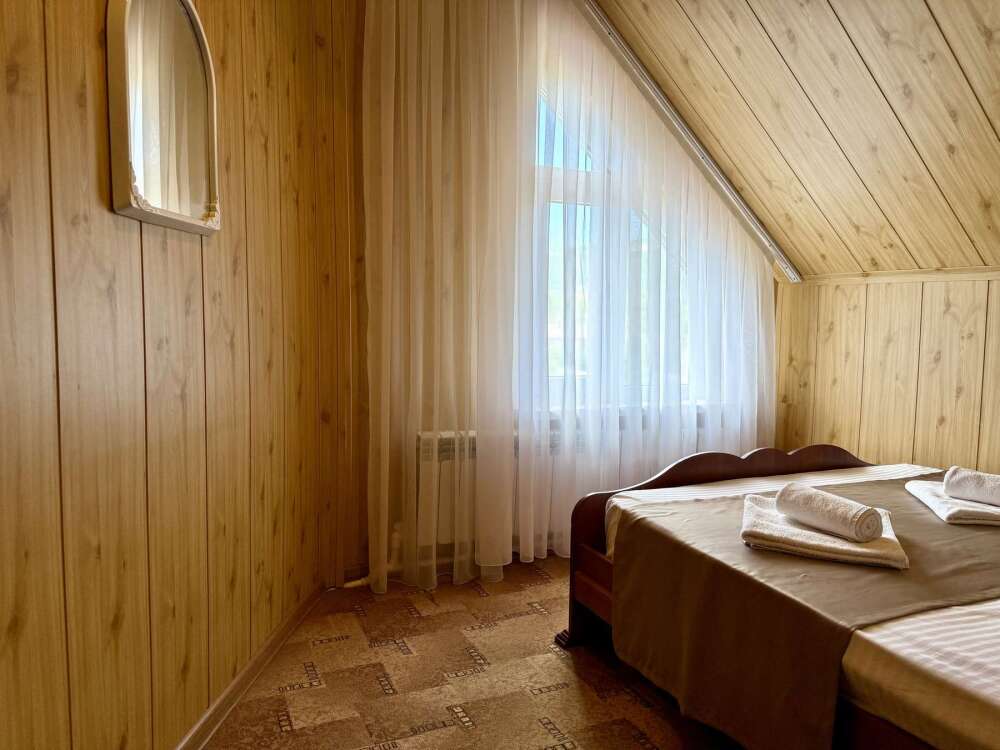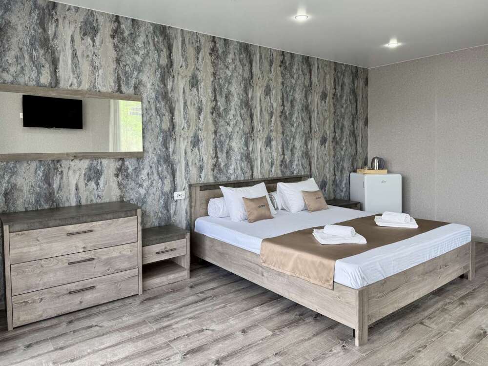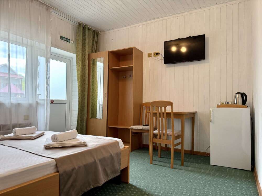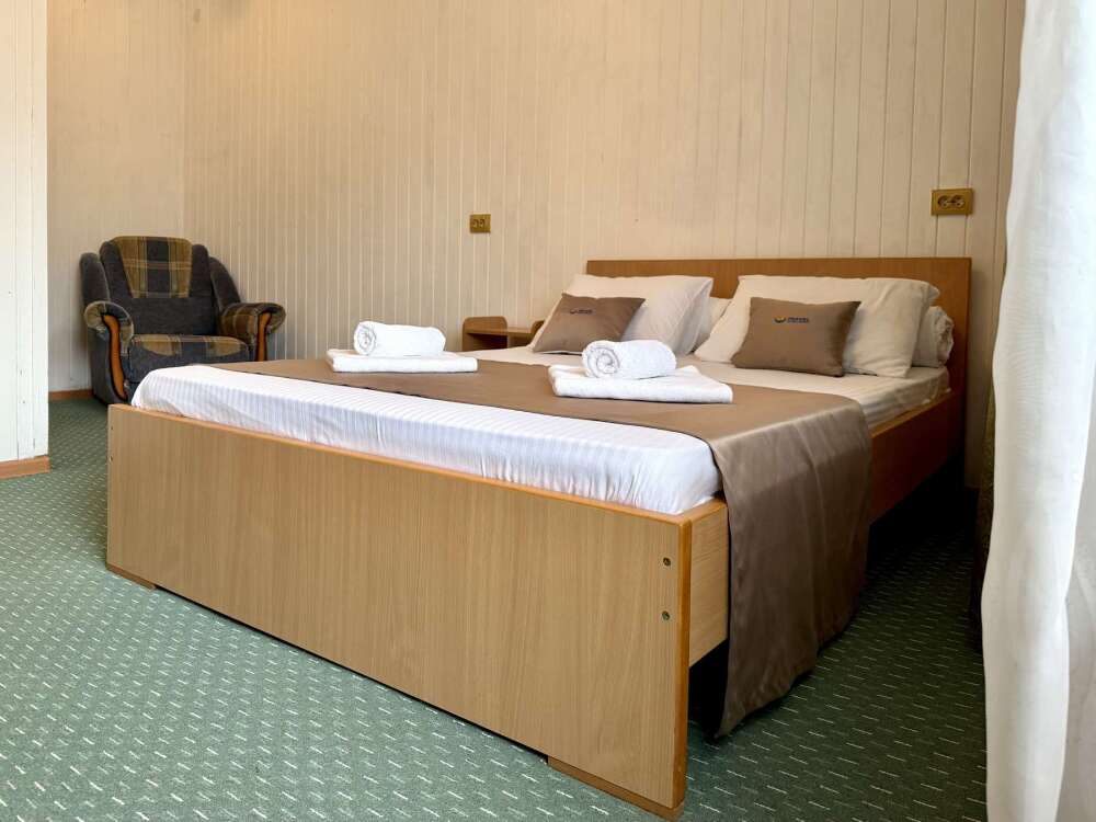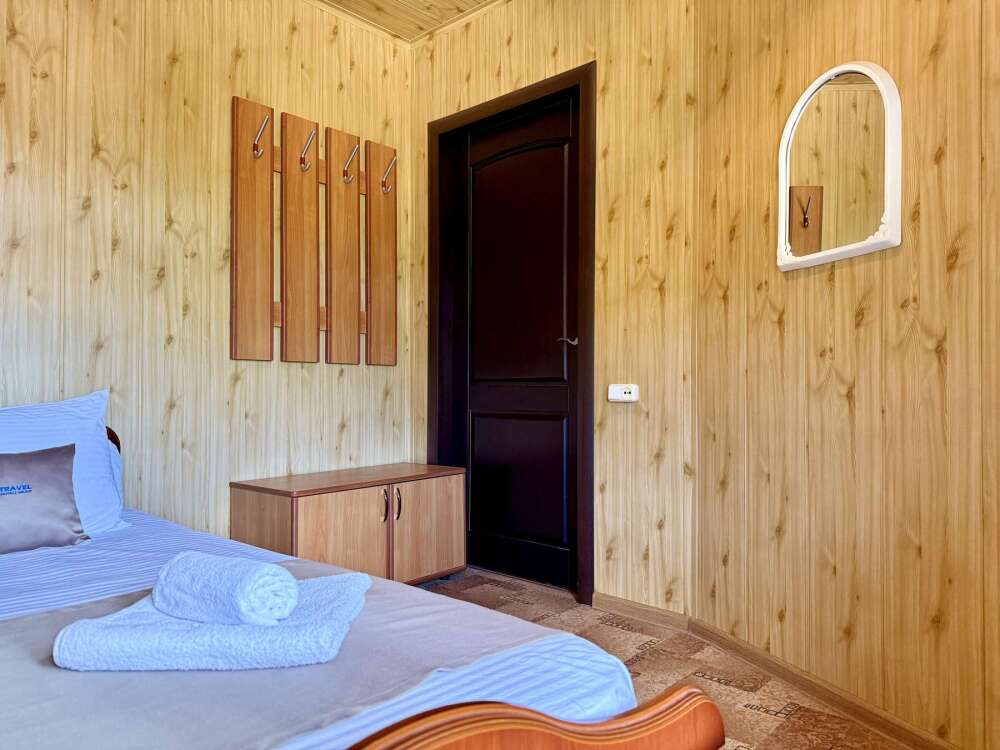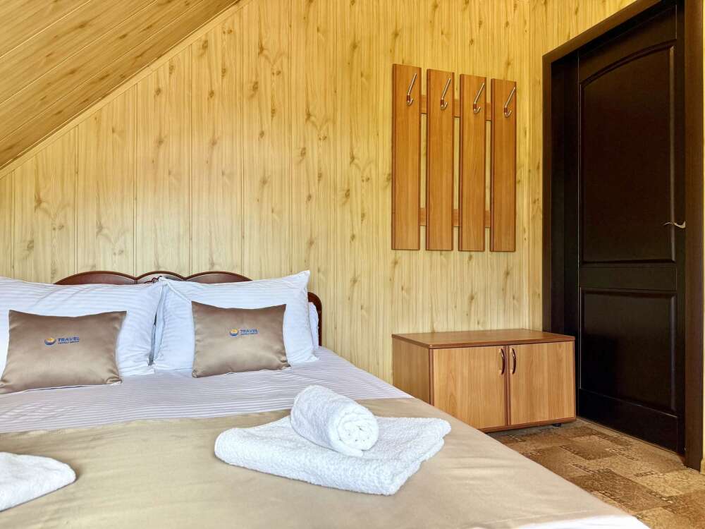 Номер с двуспальной кроватью, где после активного дня на природе вы окунётесь в тишину и отдых.