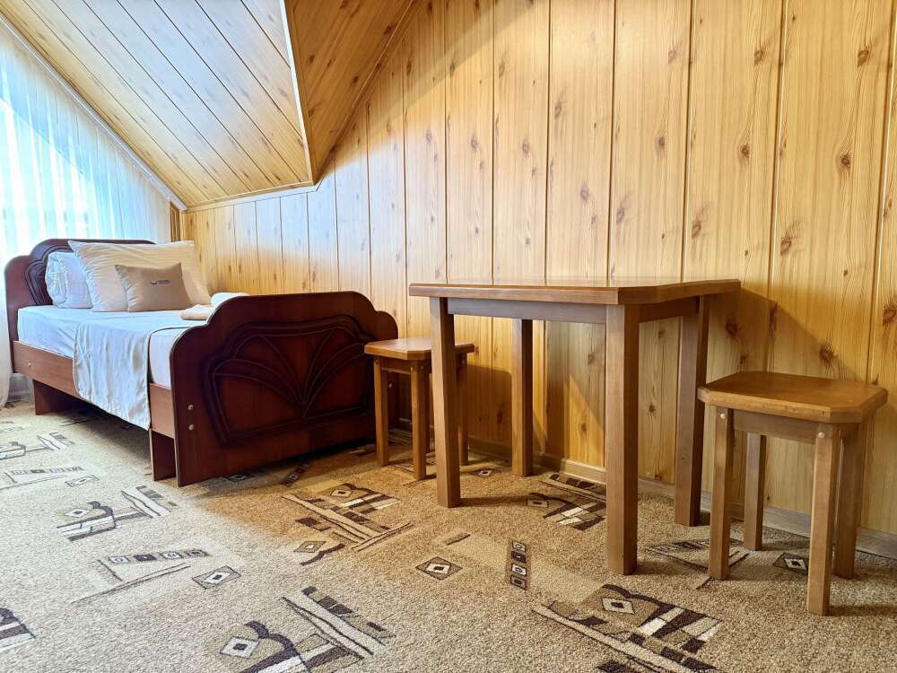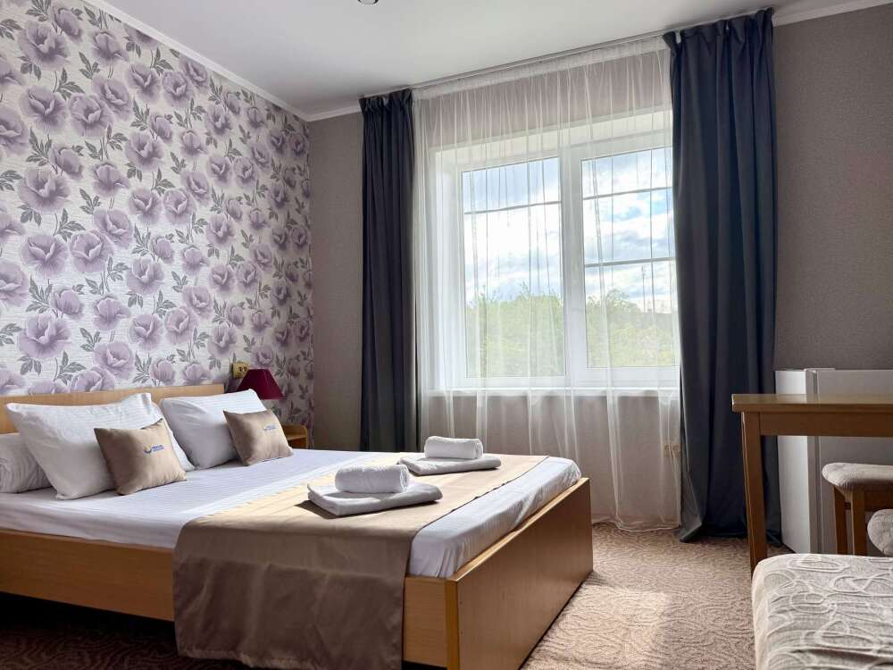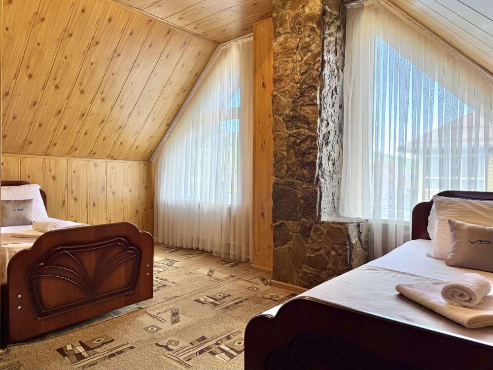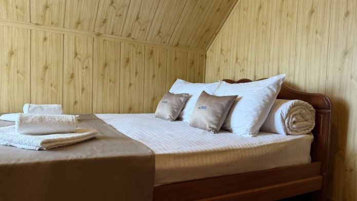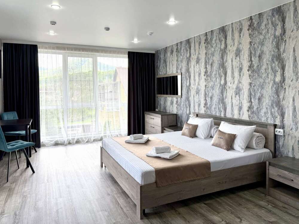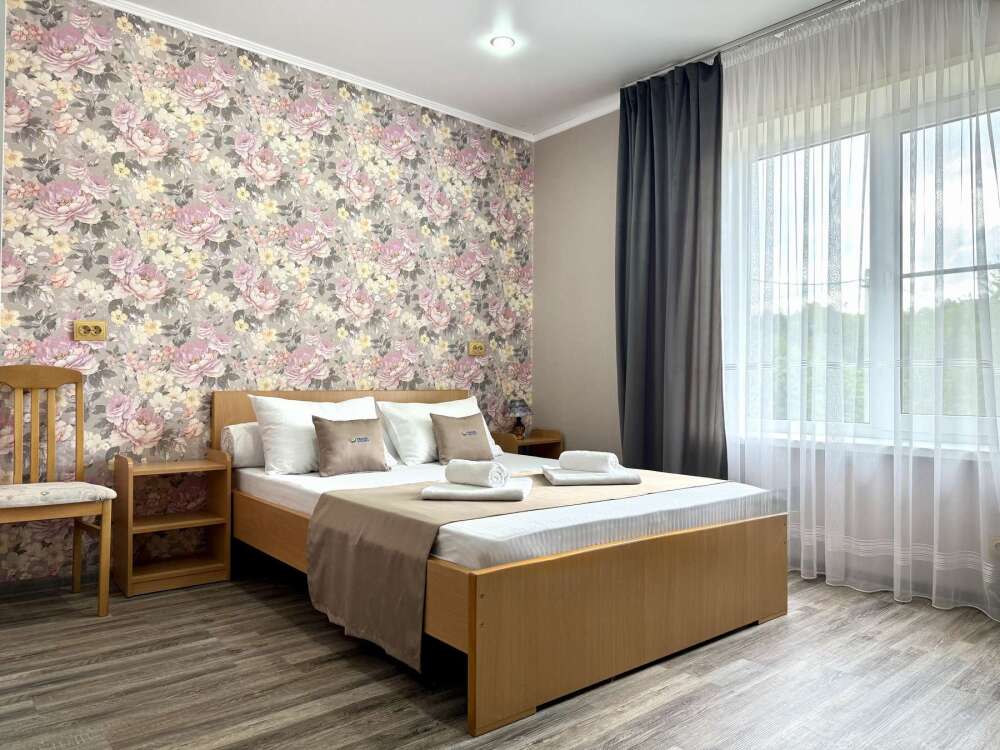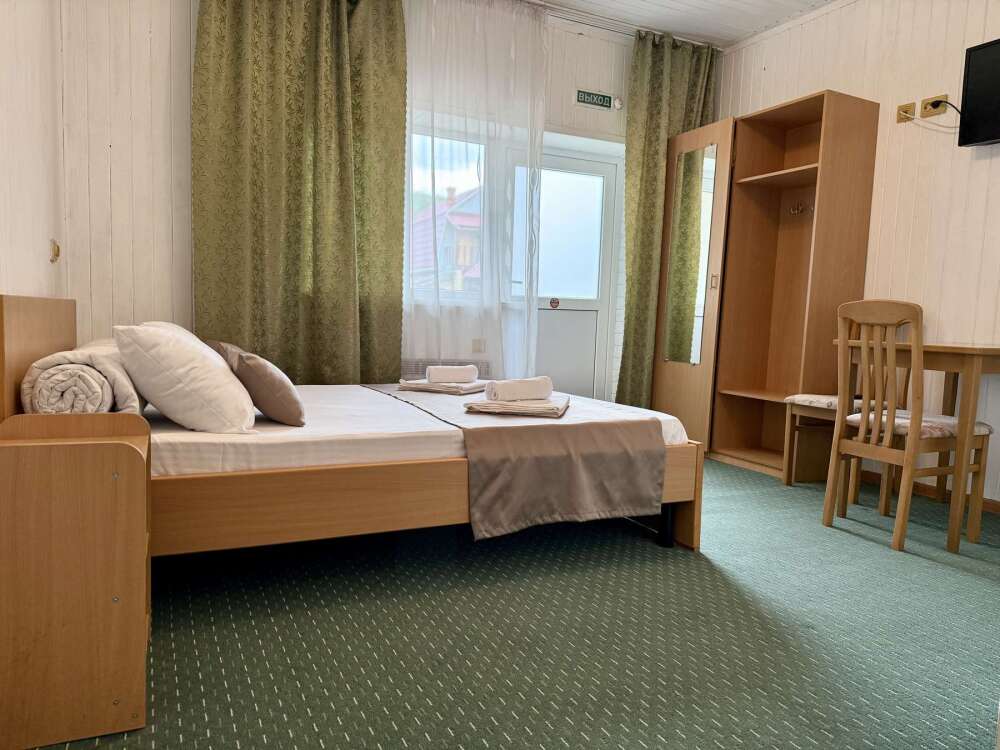 Номер с двуспальной кроватью, где после активного дня на природе вы окунётесь в тишину и отдых.