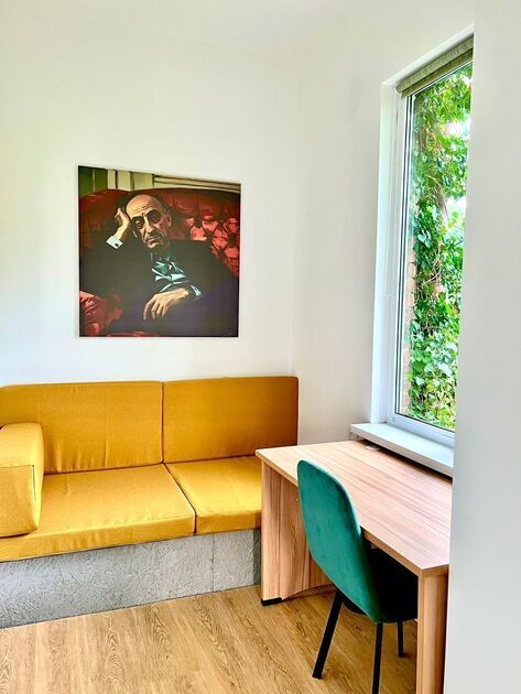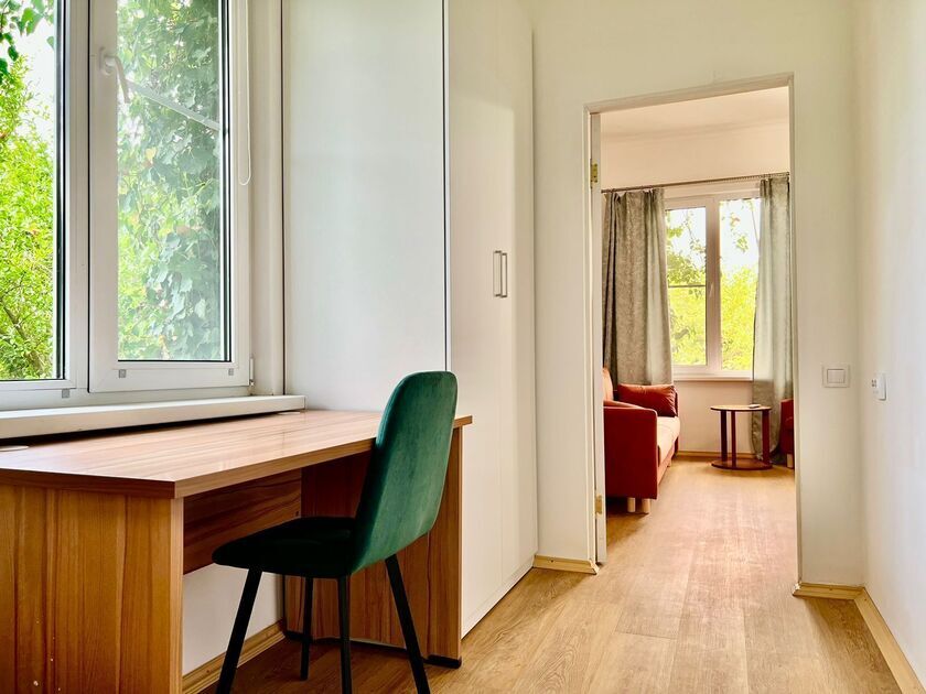 Также есть небольшая третья комната со спальным местом для ребенка, эта комната может служить кабинетом с рабочим местом (стол и стул).