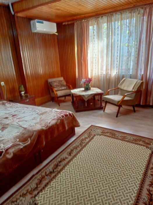 Дом можно арендовать как «под ключ», так и по номерам. На 1 этаже находится 2-местный номер со стиральной машиной. На 2 этаже - 2-местный номер (собственный санузел будет готов к осени) и 2-местный номер с возможностью размещения 3 гостя в общем холле на диване. Все номера оснащены кондиционером.