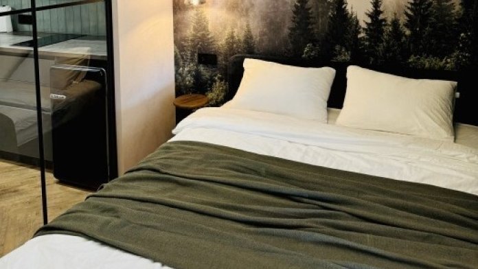Комфортное проживание до 3 человек (двуспальная кровать и удобное кресло-кровать).