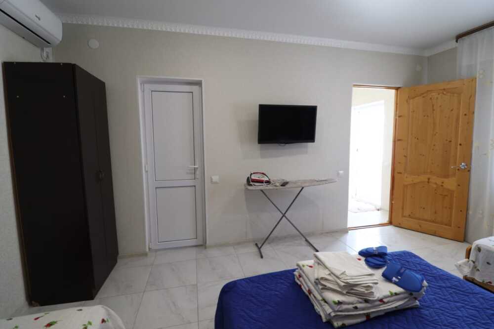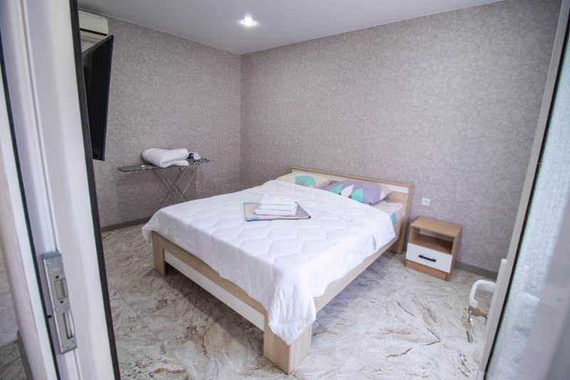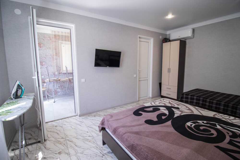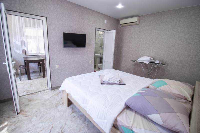 В домике есть все необходимое: односпальные или двуспальная кровать, шкаф, прикроватные тумбочки, вешалка, зеркало, собственная кухня, оснащенная всей необходимой техникой, собственный санузел, телевизор, кондиционер, Wi-Fi интернет.