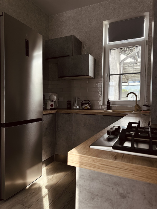 Кухня со всем необходимым-варочная панель, микроволновая печь, холодильник, чайник, посудомоечная машина, аэрогриль, капсульная кофемашина с капсулами, вся посуда для приготовления блюд и сервировки стола в необходимом количестве.